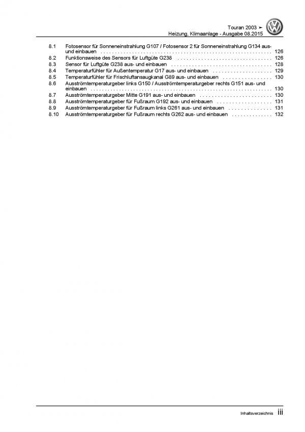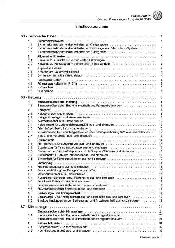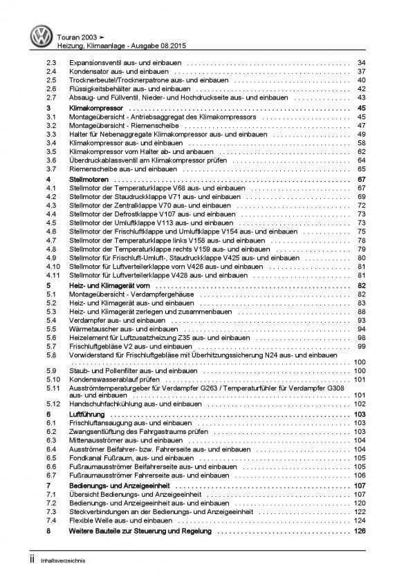 VW Touran Typ 1T 2003-2015 Heizung Belüftung Klimaanlage Reparaturanleitung
