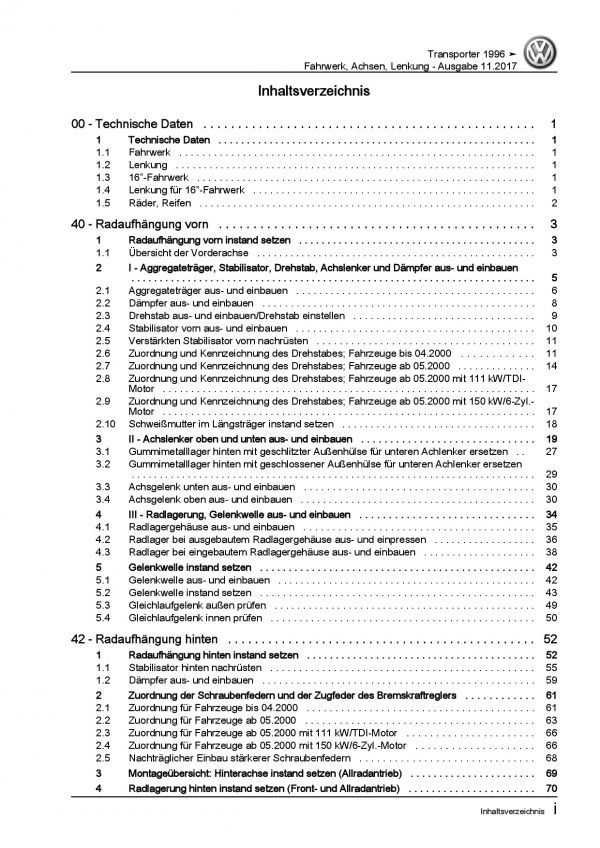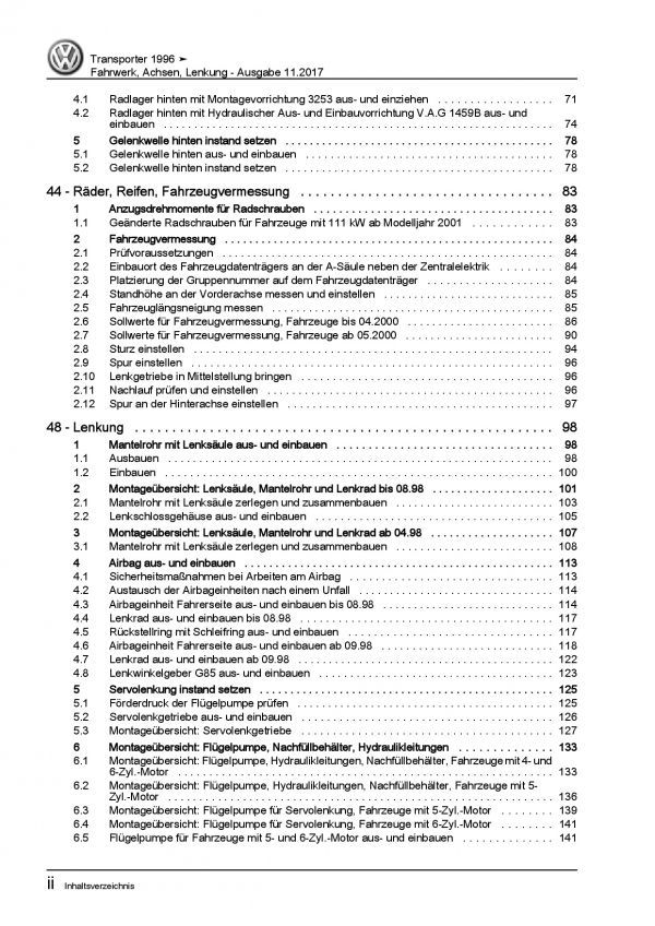 VW Transporter T4 1990-2003 Fahrwerk Achsen Lenkung Reparaturanleitung