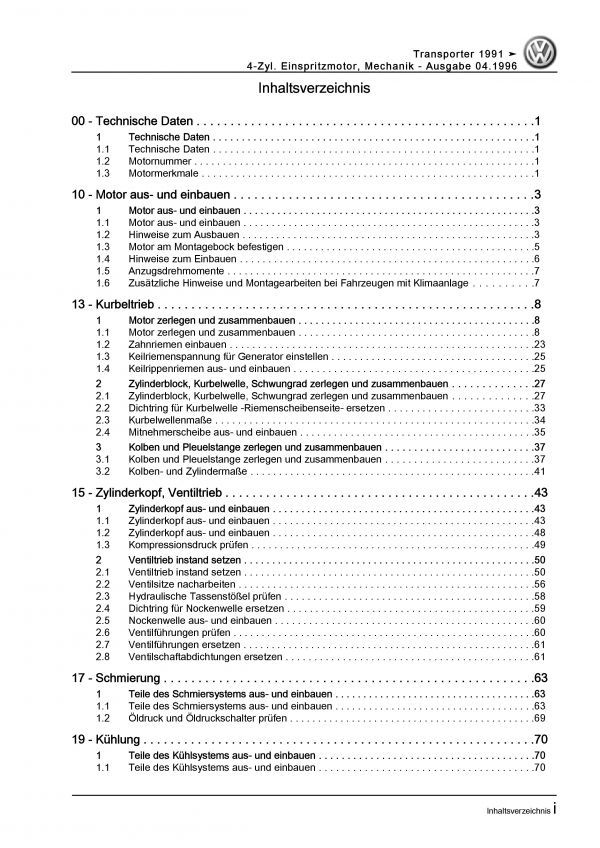 VW Transporter T4 (90-03) 2,0l Benzinmotor 84 PS Mechanik Reparaturanleitung PDF