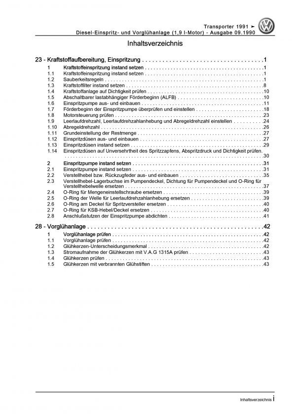 VW Transporter T4 (90-03) Diesel Einspritz/Vorglühanlage 1,9l Reparaturanleitung