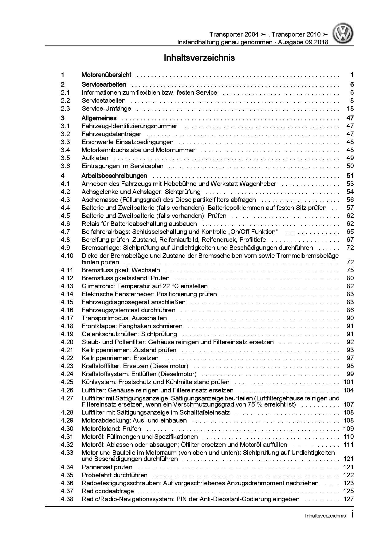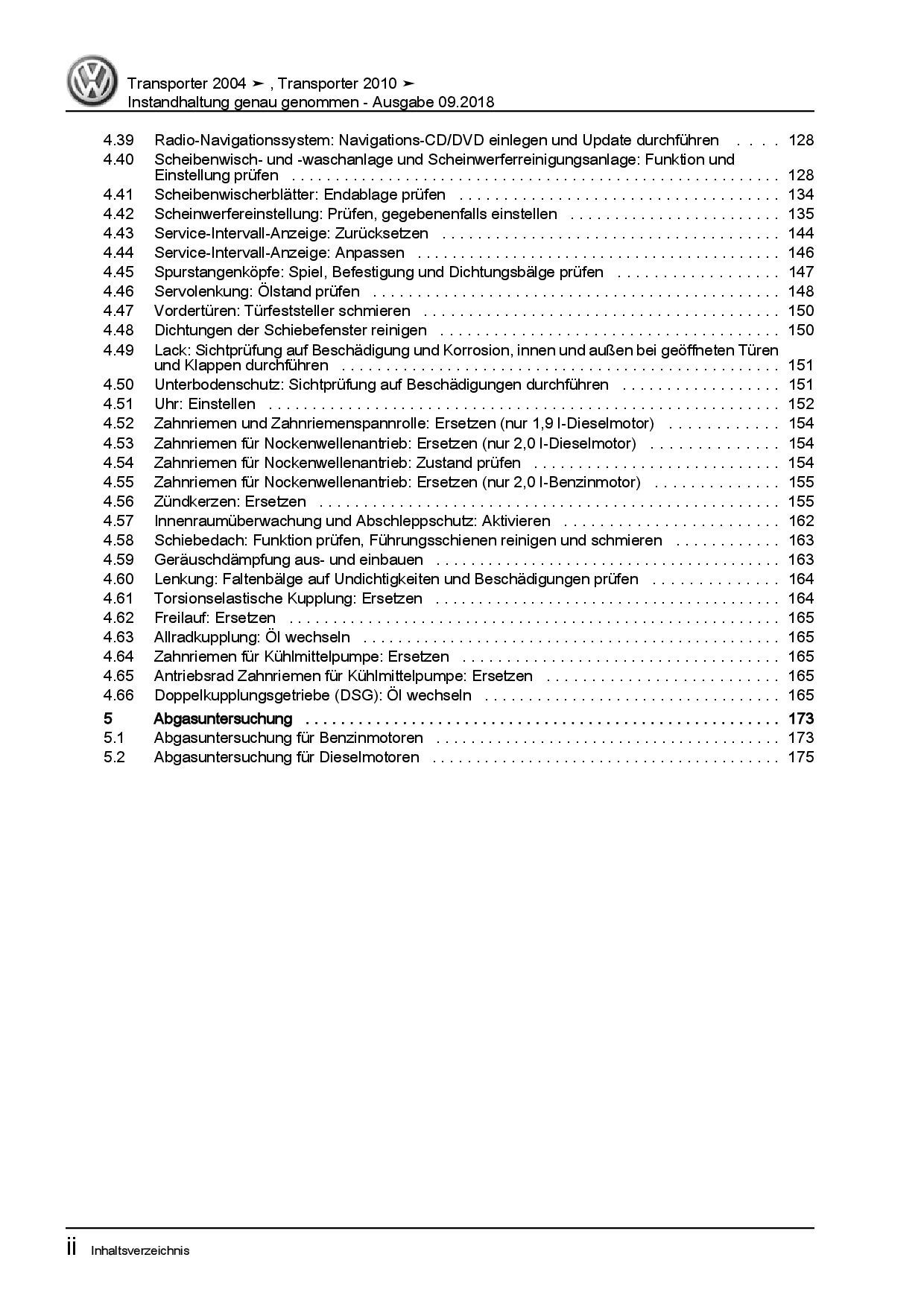 VW Transporter T5 2003-2015 Instandhaltung Inspektion Wartung Reparaturanleitung