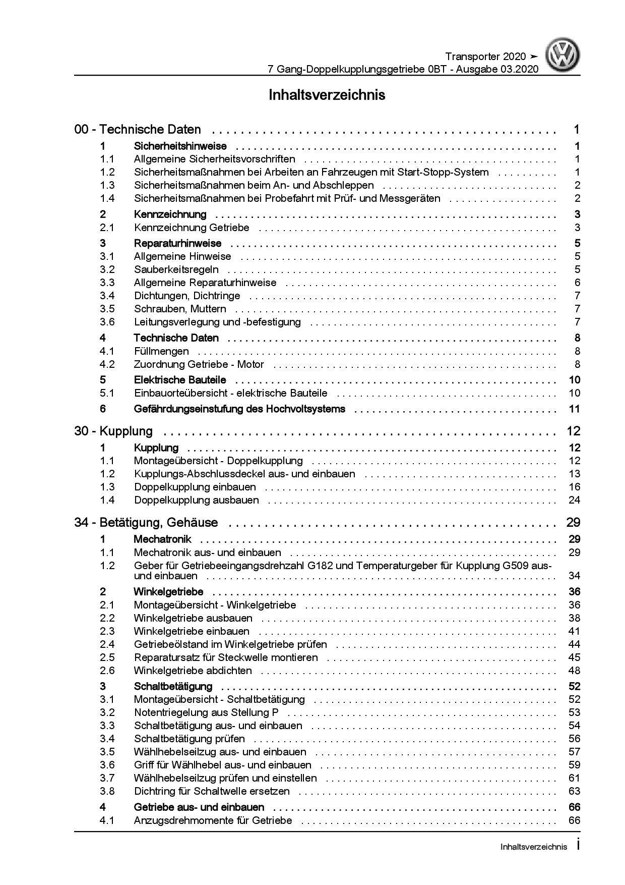 VW Transporter T6.1 (19>) 7 Gang Automatikgetriebe DKG 0BT Reparaturanleitung