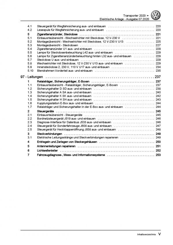 VW Transporter T6.1 (19>) Elektrische Anlage Elektrik Systeme Reparaturanleitung