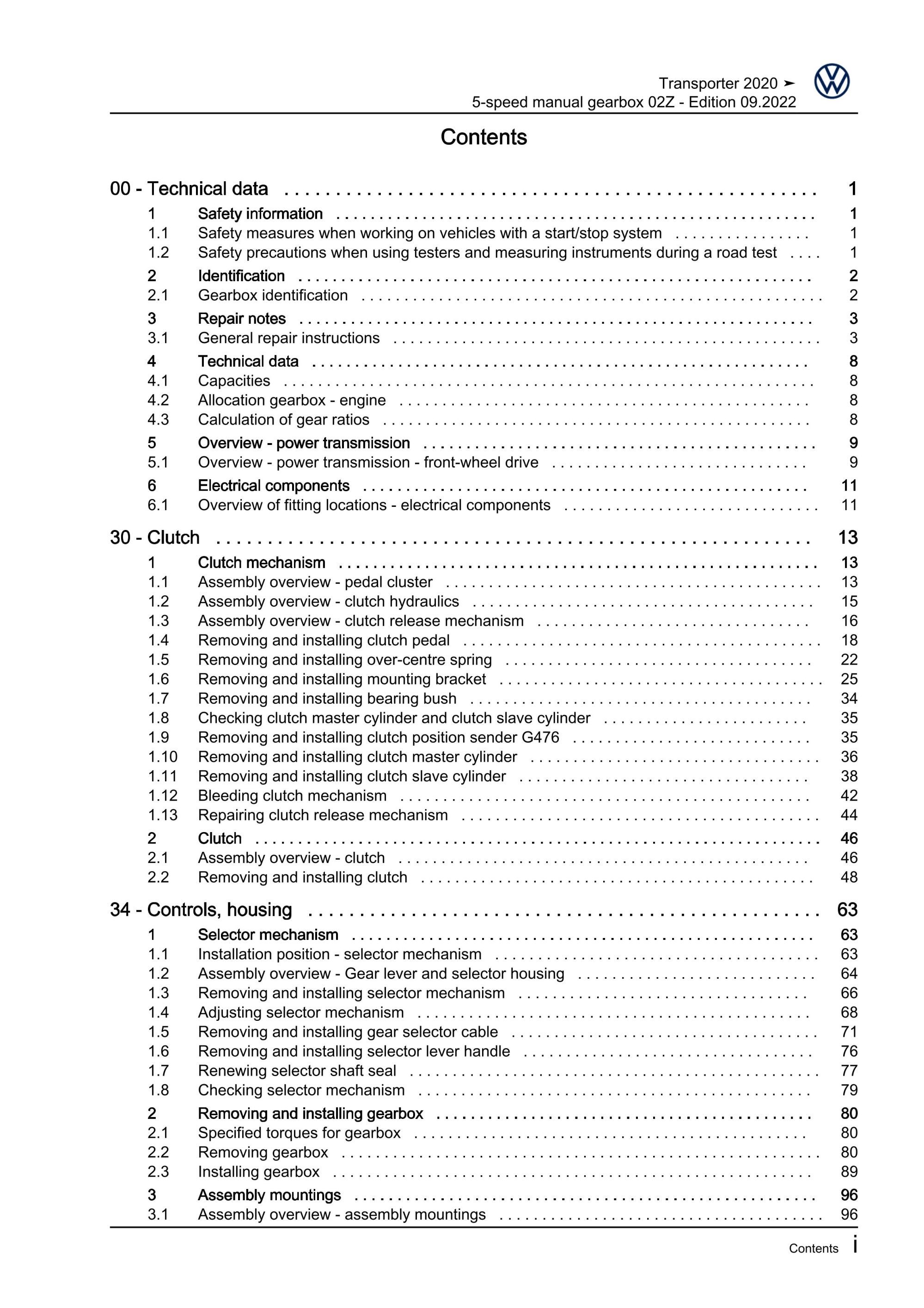 VW Transporter T6.1 2019-2021 5 speed manual gearbox 02Z repair workshop eBook