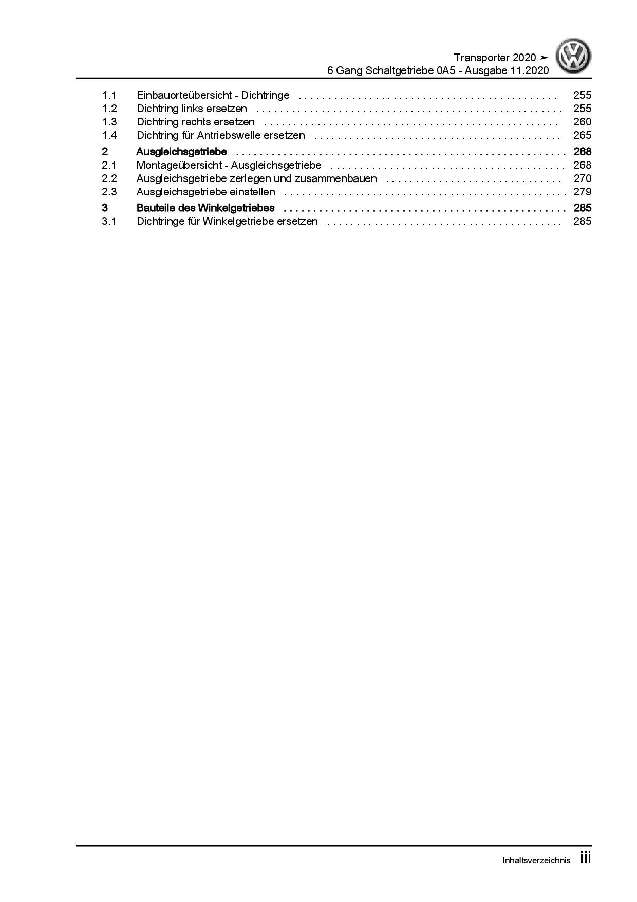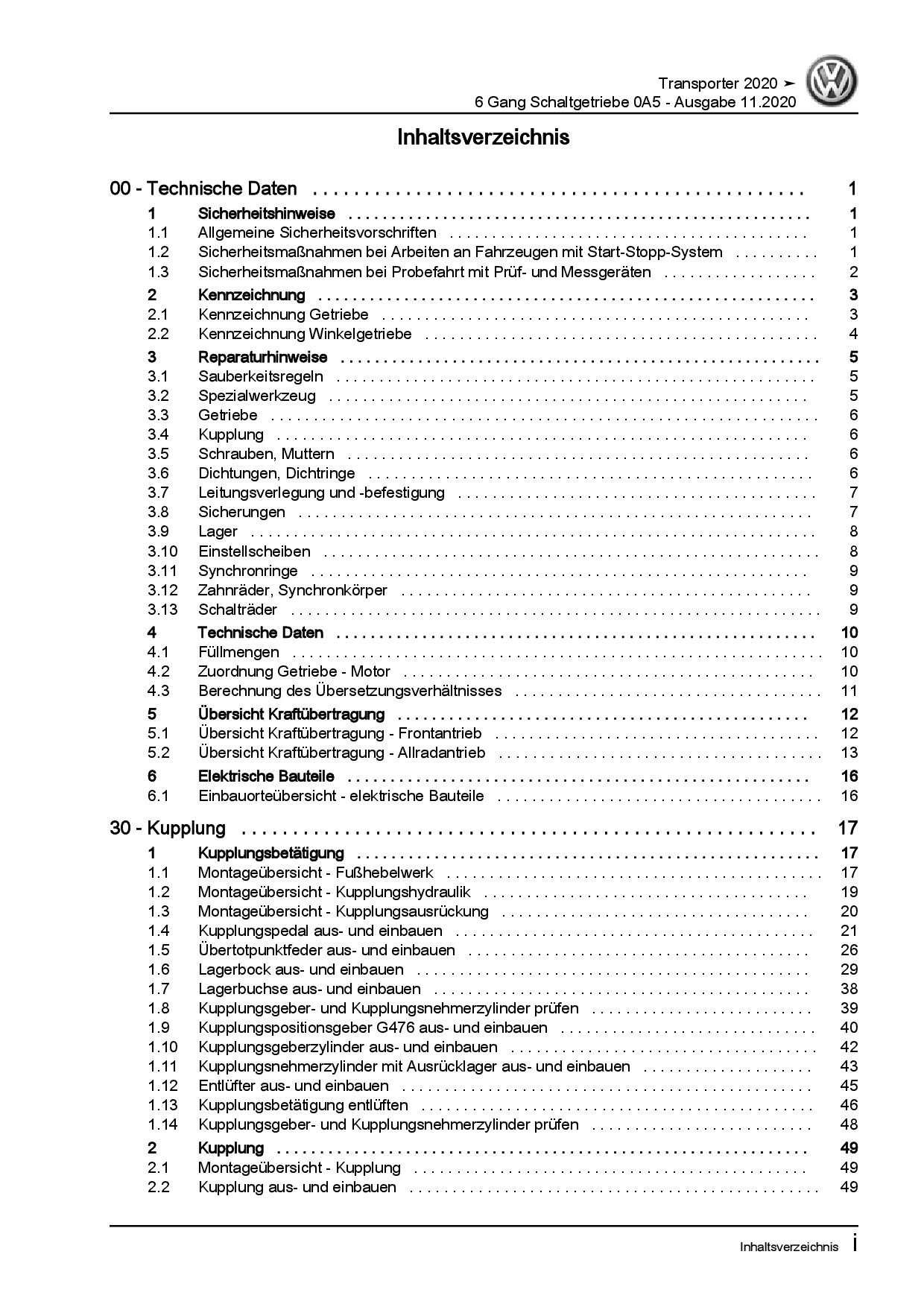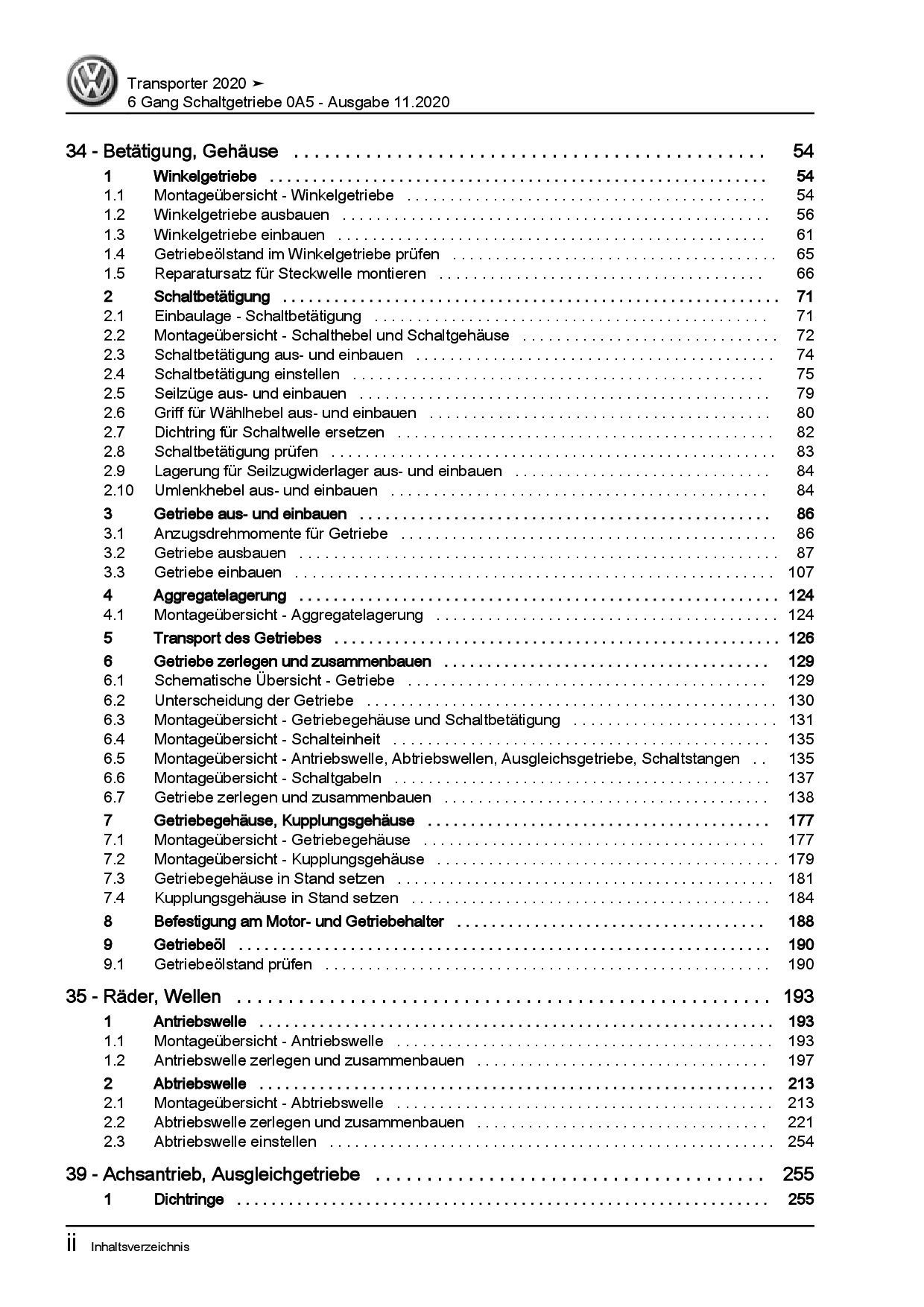 VW Transporter T6.1 ab 2019 6 Gang Schaltgetriebe 0A5 Reparaturanleitung