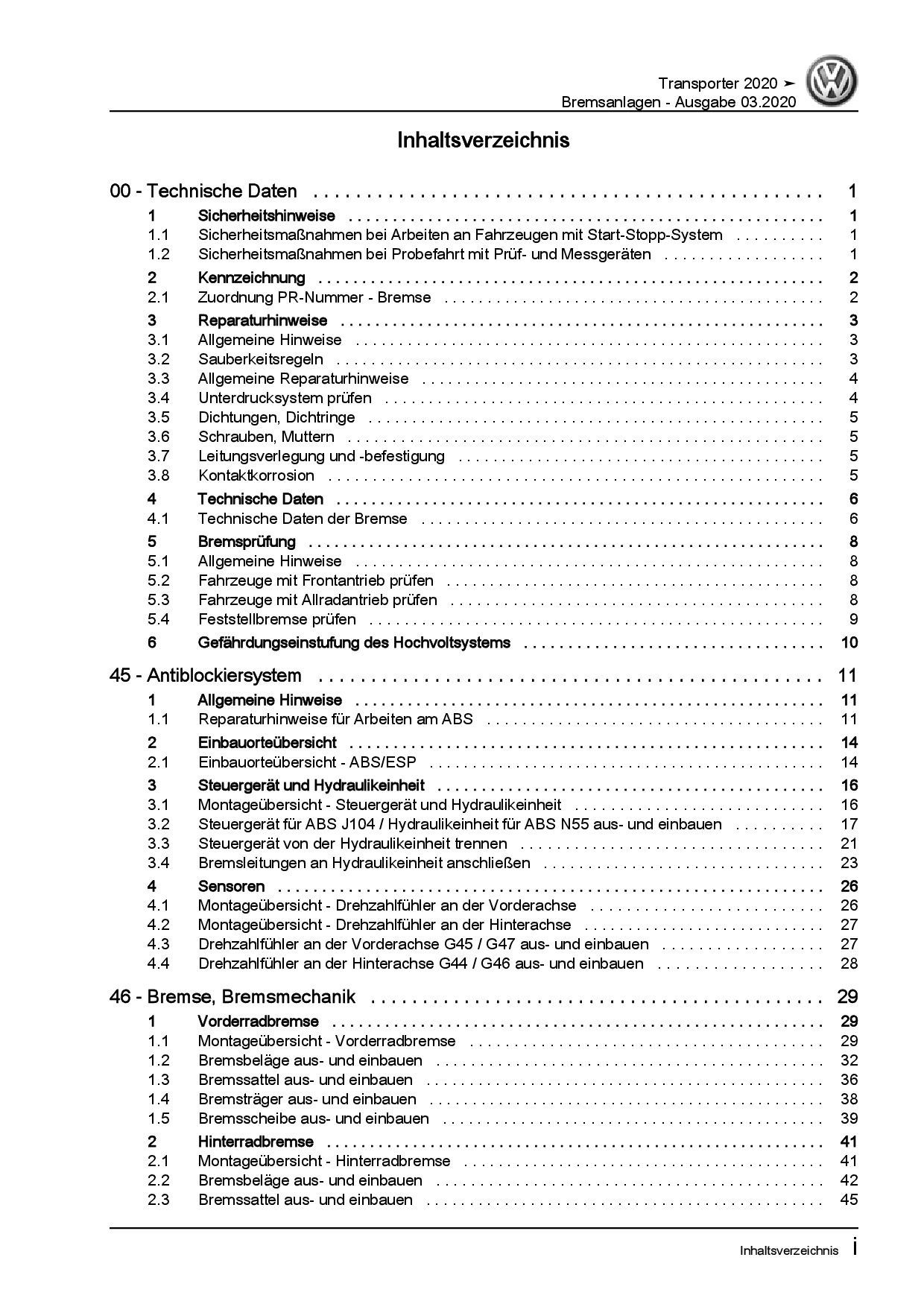 VW Transporter T6.1 ab 2019 Bremsanlagen Bremsen System Reparaturanleitung