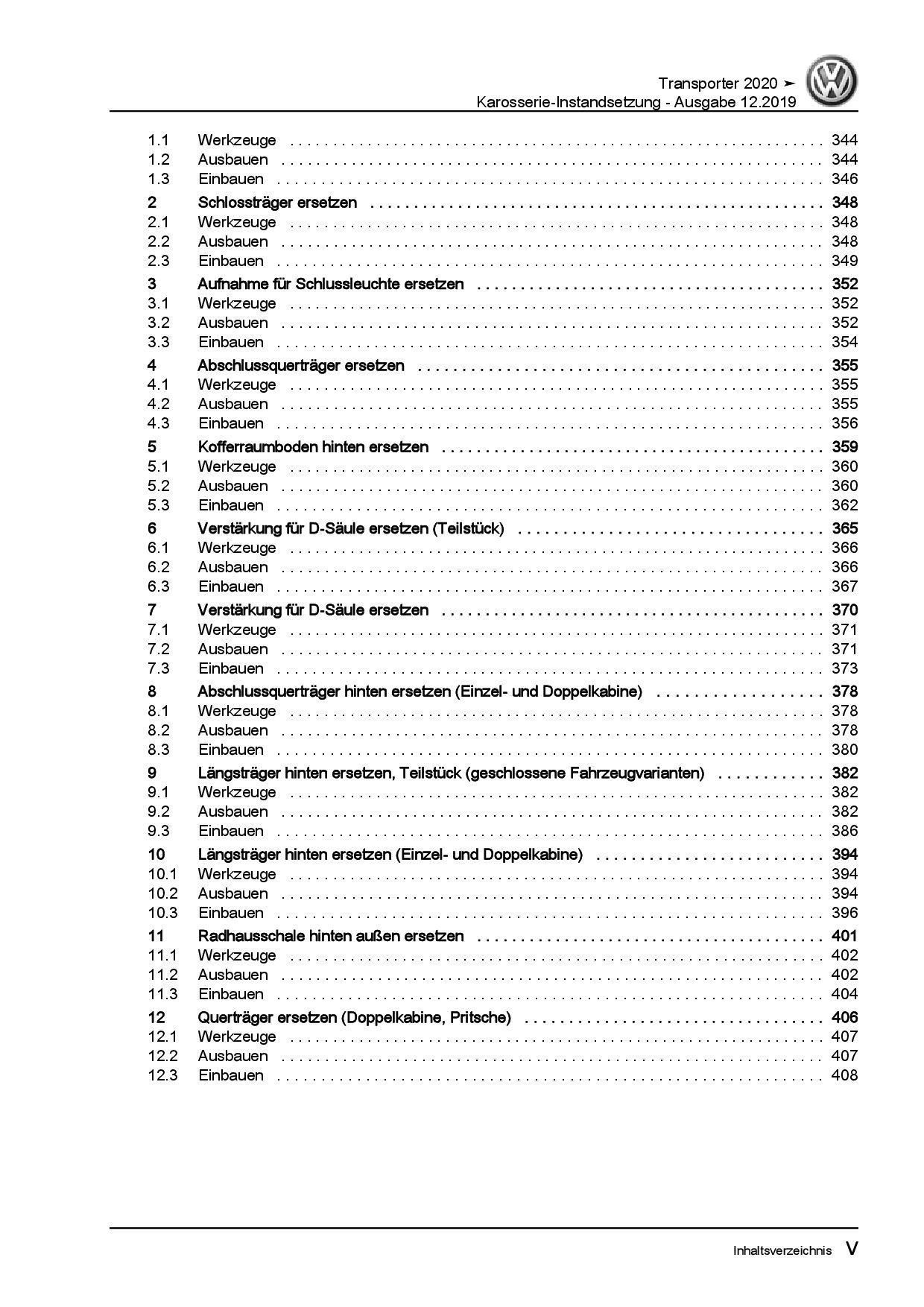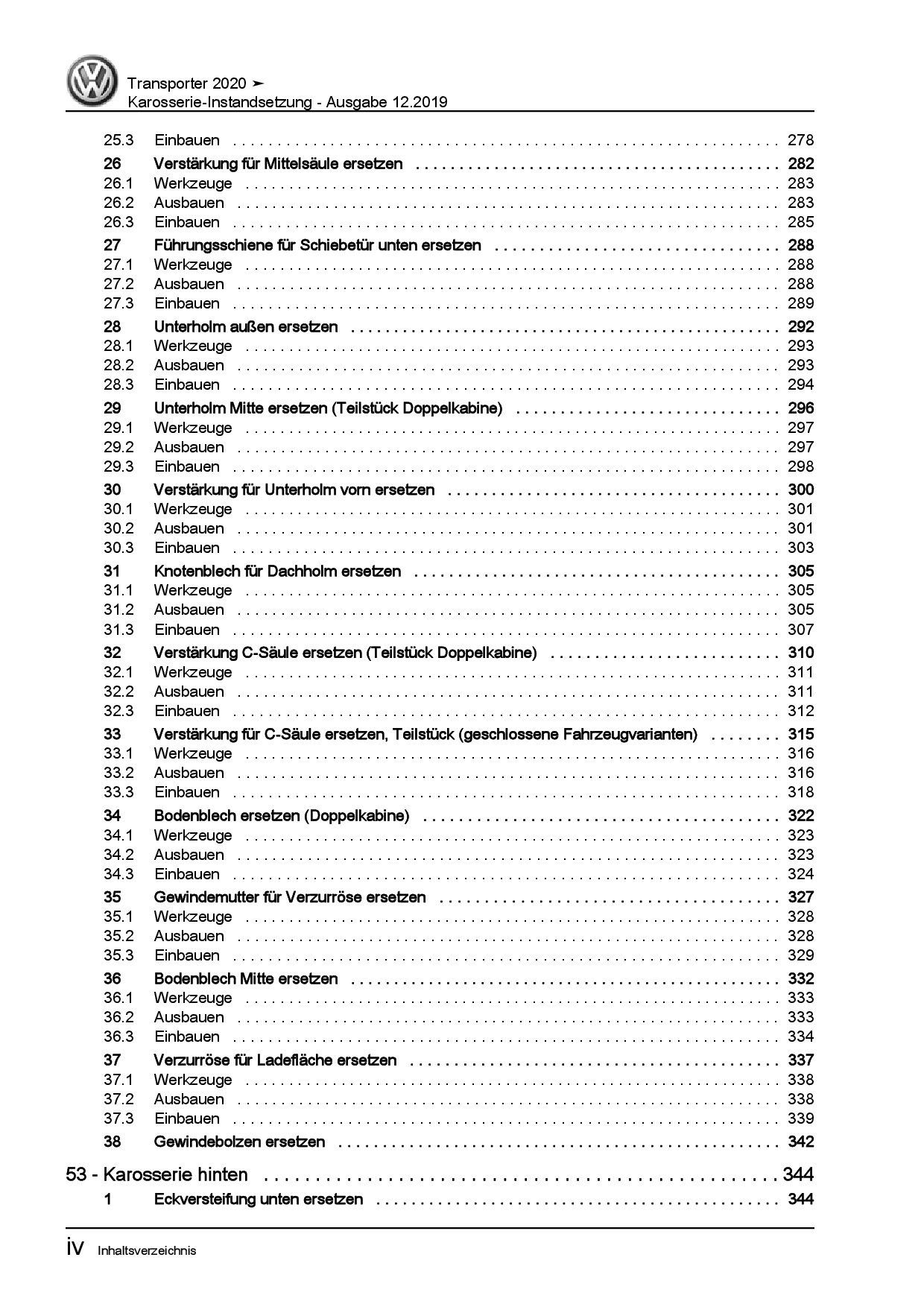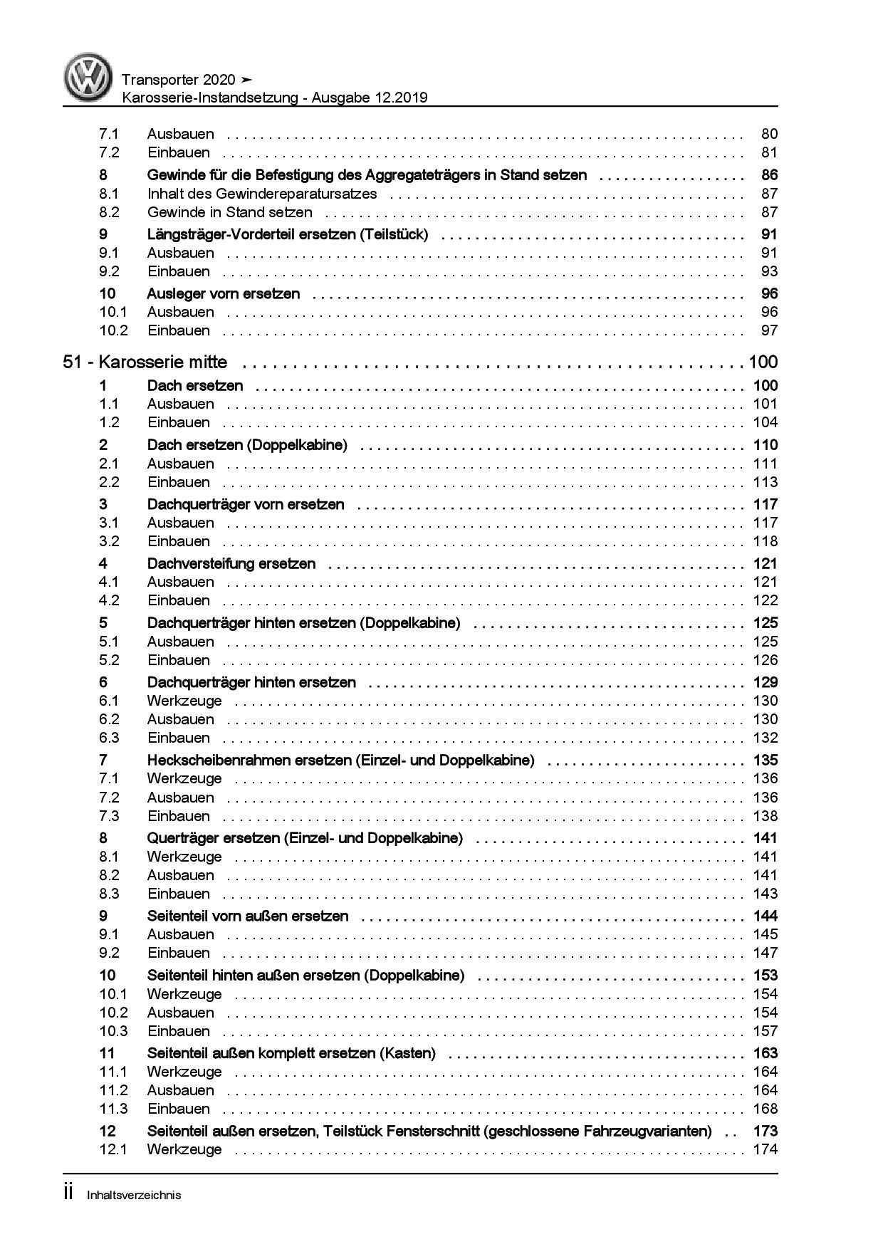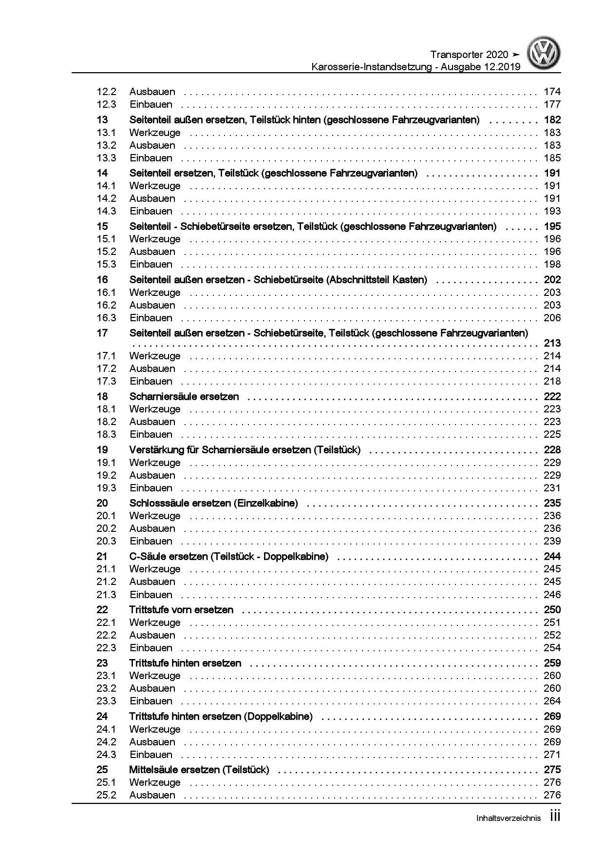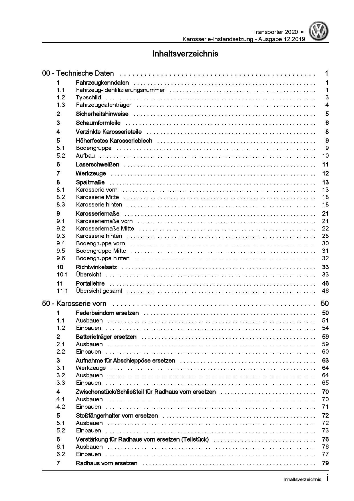 VW Transporter T6.1 ab 2019 Karosserie Instandsetzung Reparaturanleitung PDF