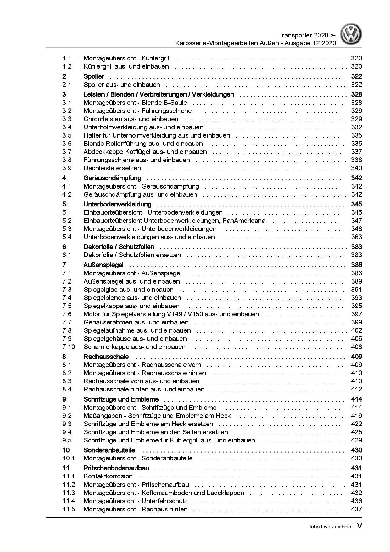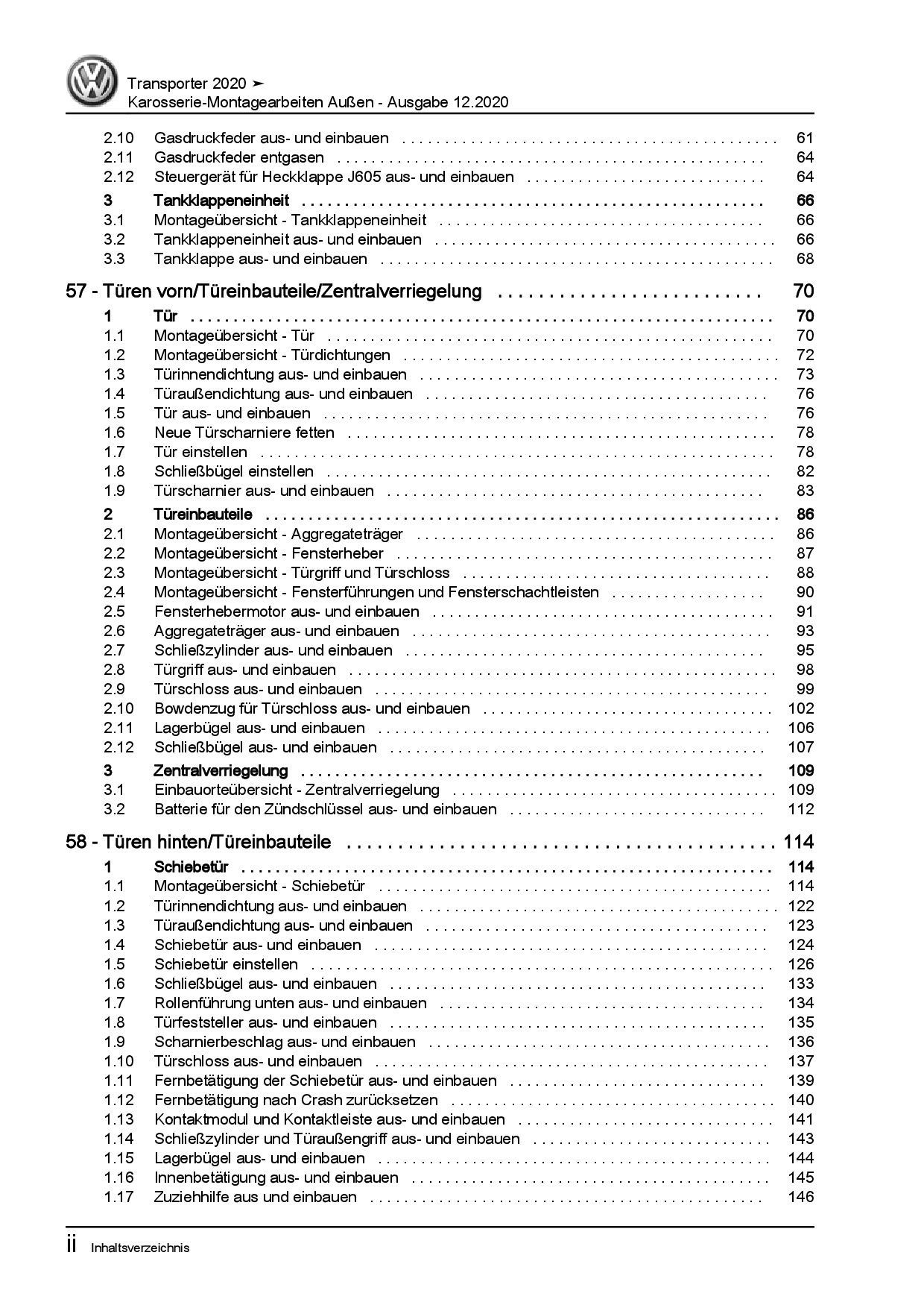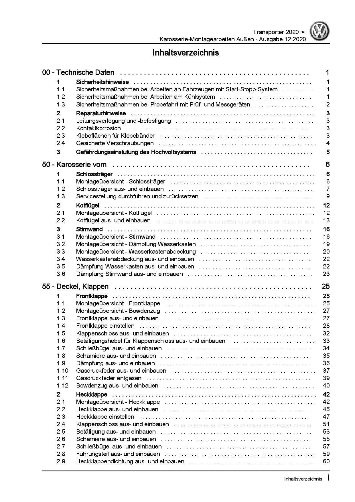 VW Transporter T6.1 ab 2019 Karosserie Montagearbeiten Außen Reparaturanleitung