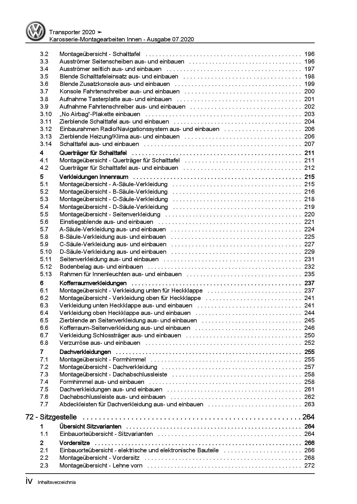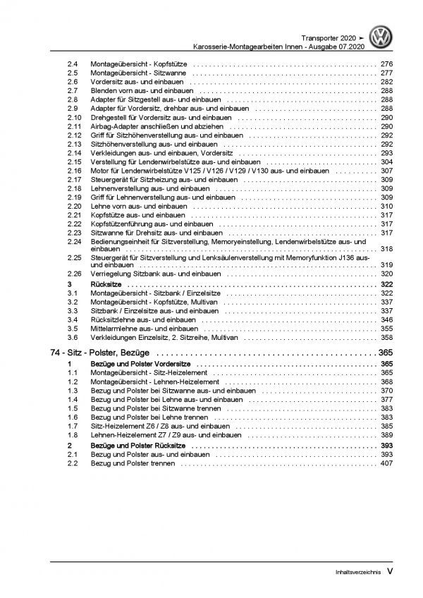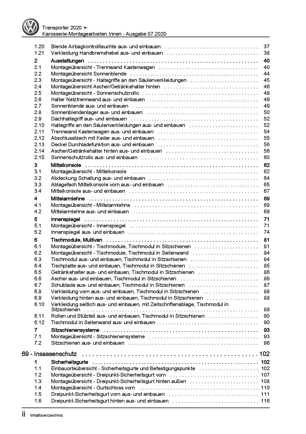 VW Transporter T6.1 ab 2019 Karosserie Montagearbeiten Innen Reparaturanleitung