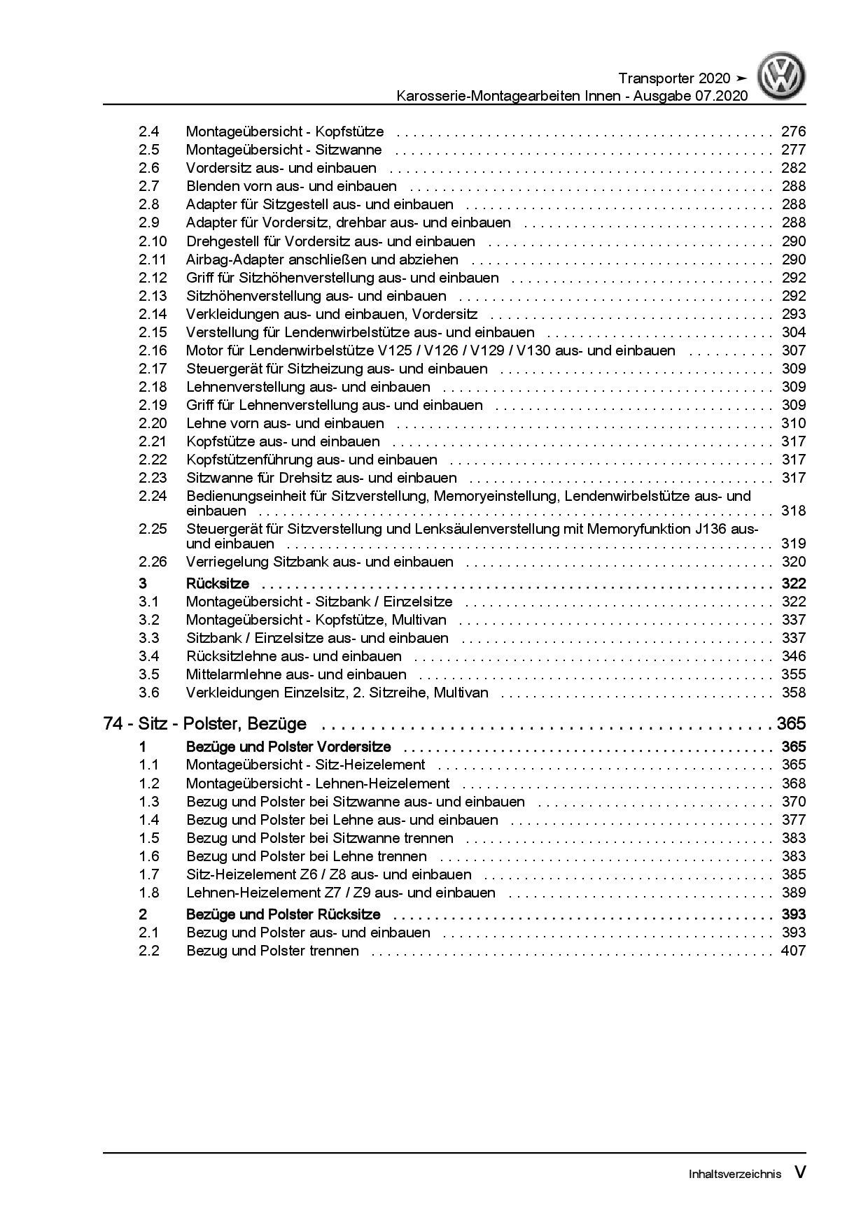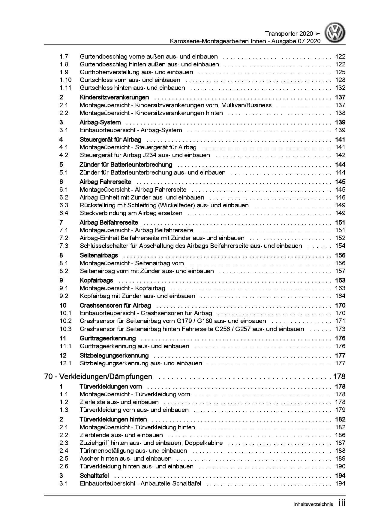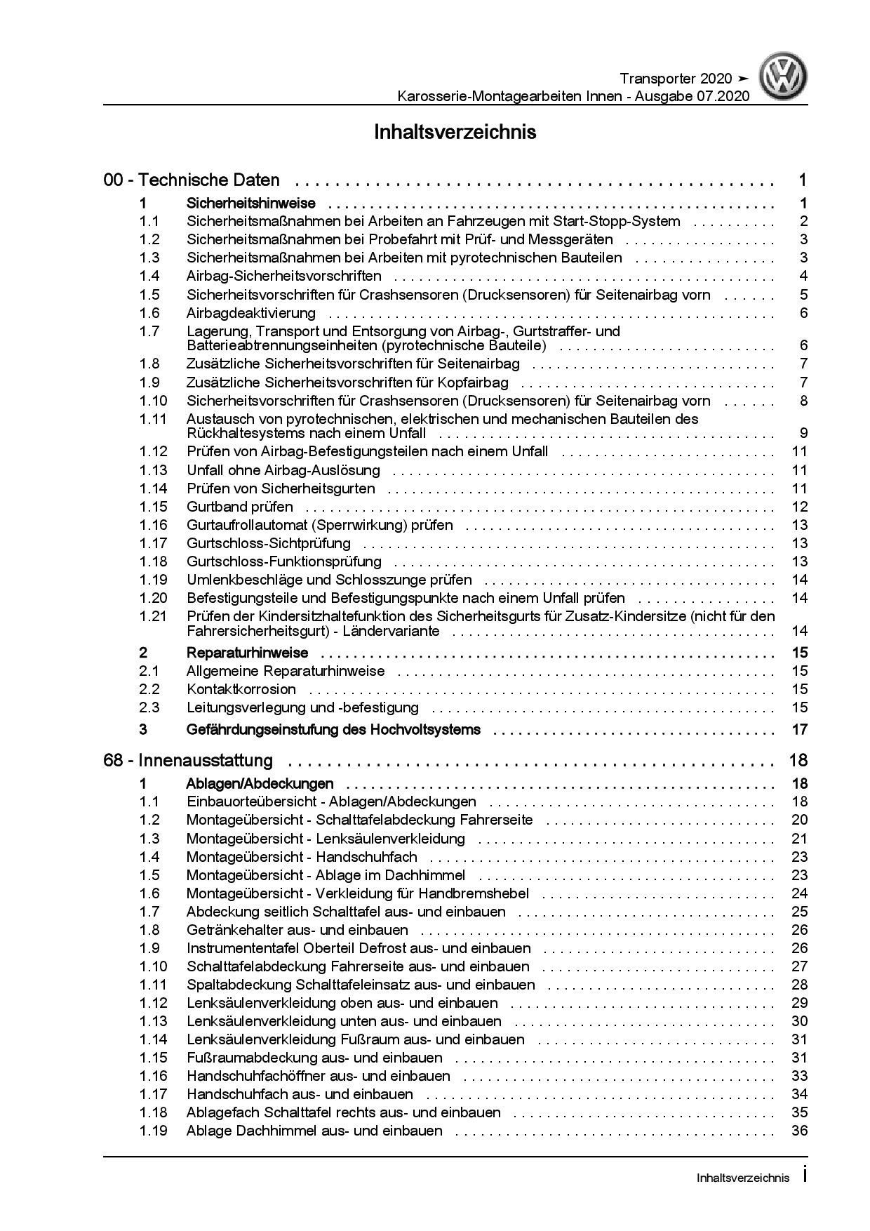 VW Transporter T6.1 ab 2019 Karosserie Montagearbeiten Innen Reparaturanleitung