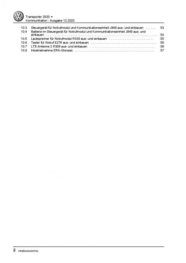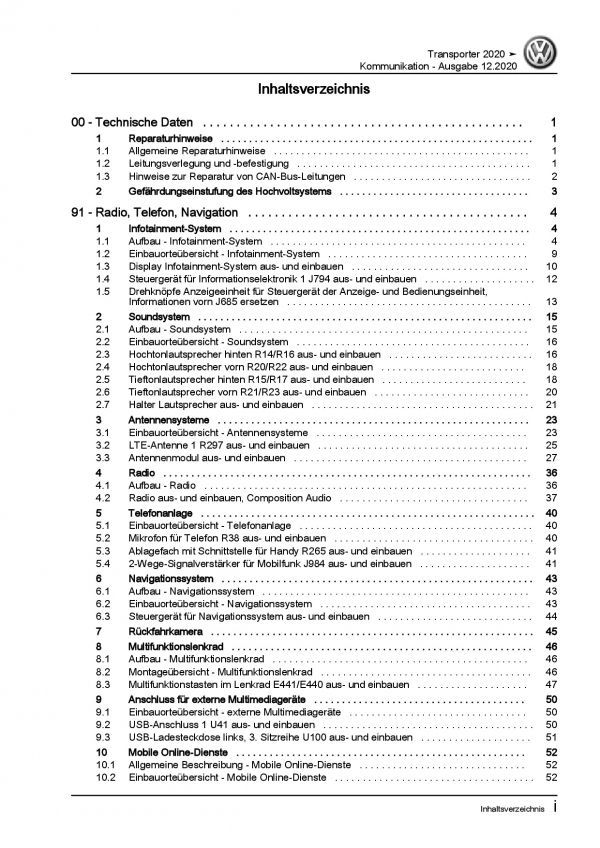 VW Transporter T6.1 ab 2019 Radio Navigation Kommunikation Reparaturanleitung