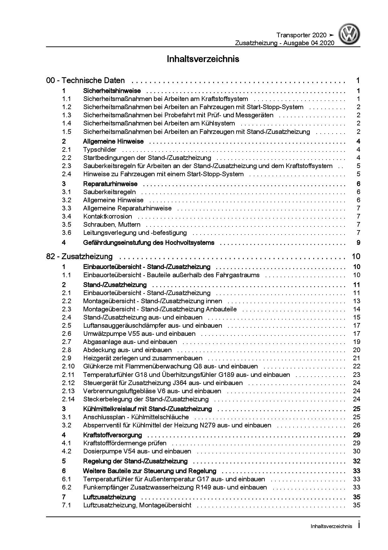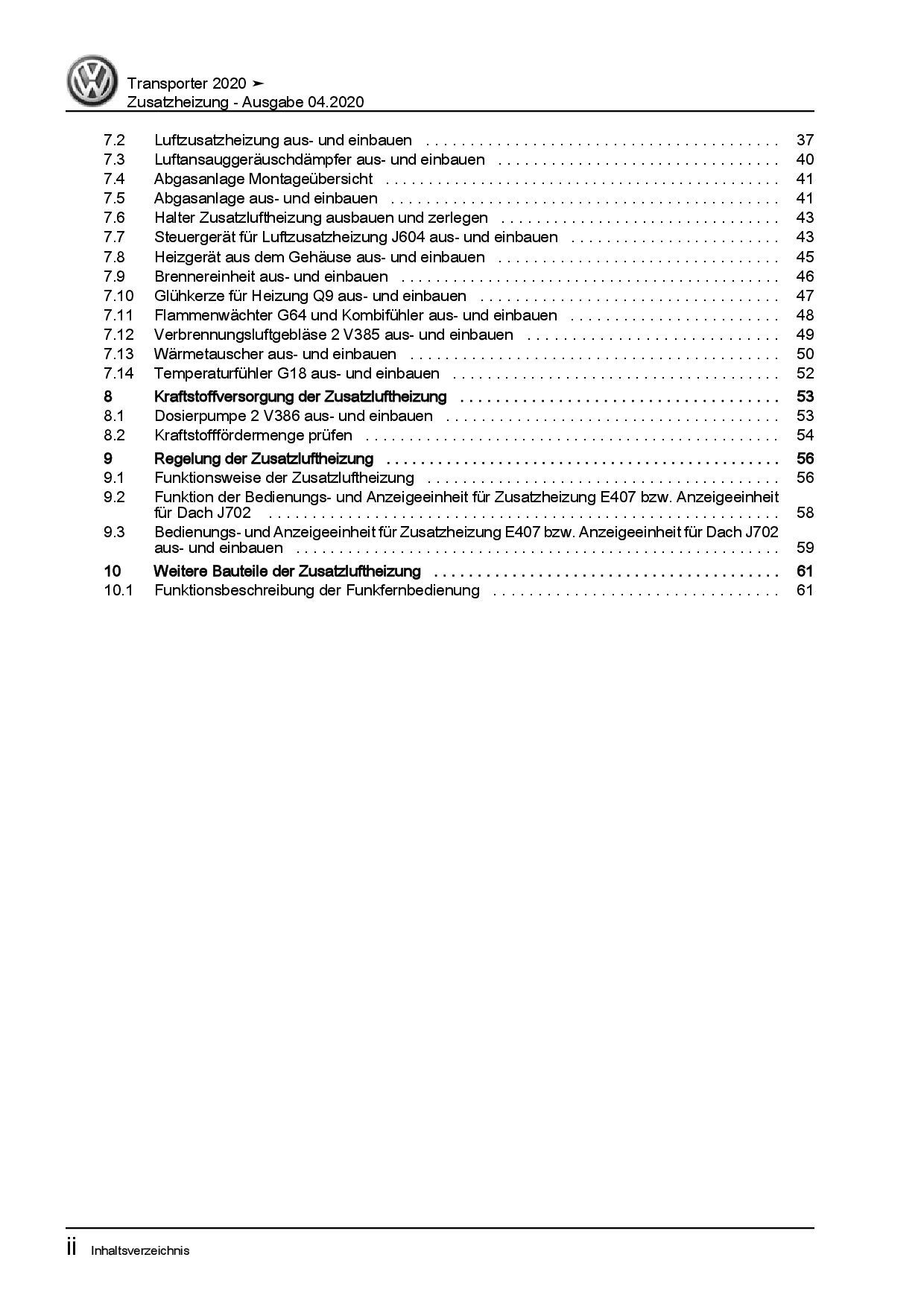 VW Transporter T6.1 ab 2019 Standheizung Zusatzheizung Reparaturanleitung