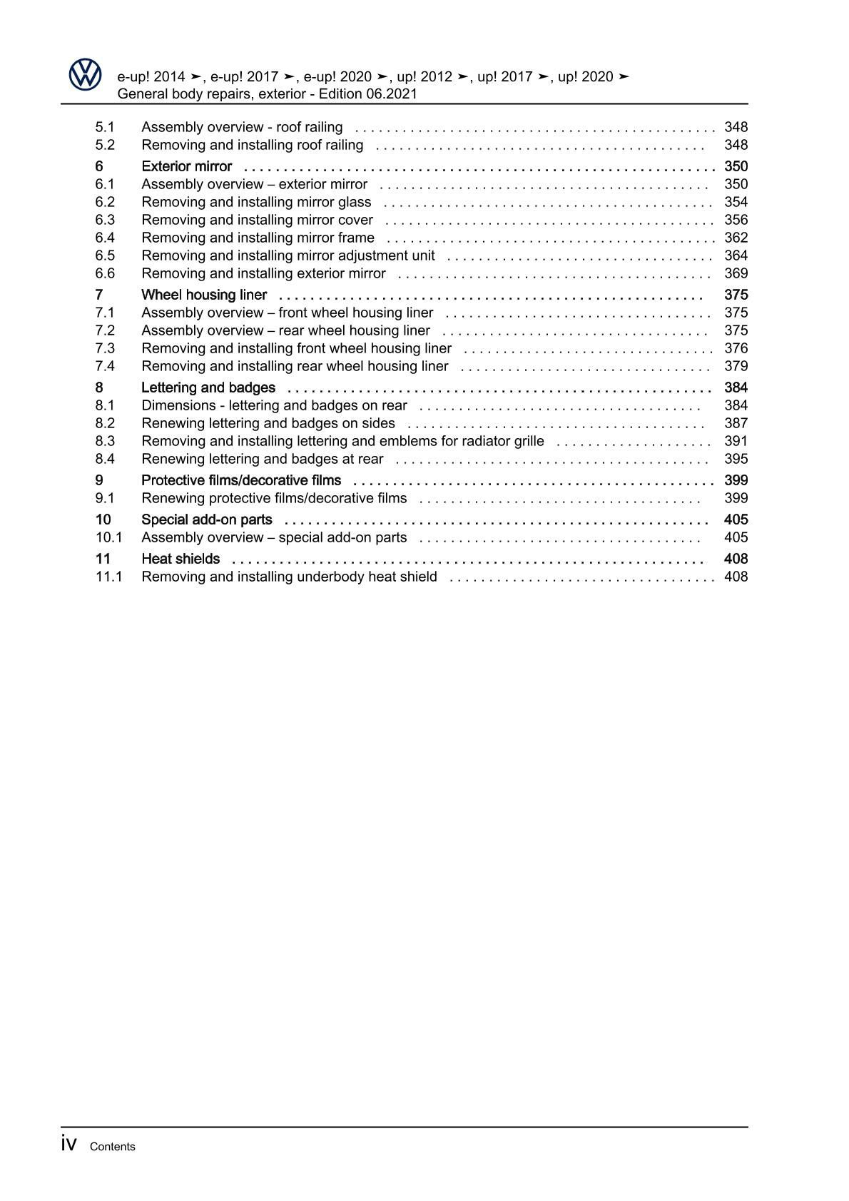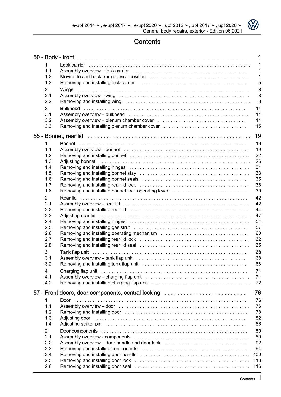 VW Up! type AA from 2016 general body repairs exterior workshop manual pdf ebook