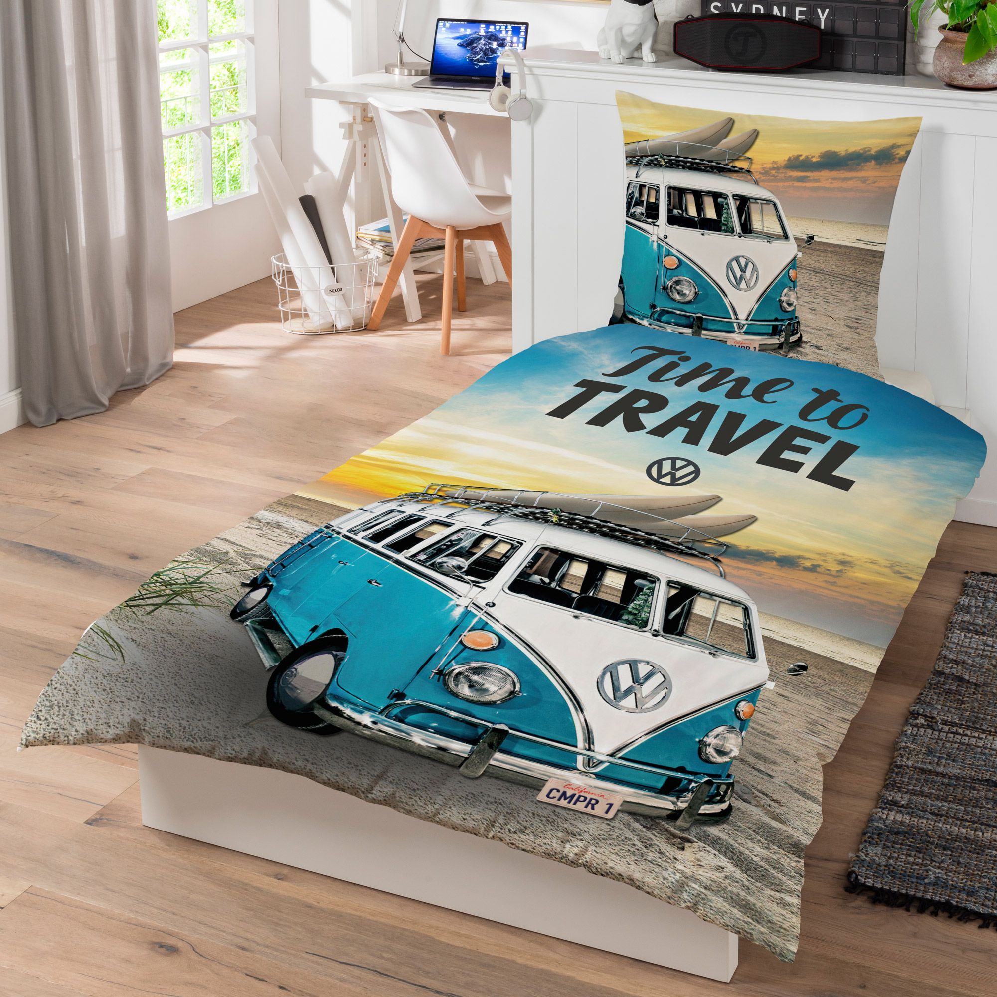 VW Volkswagen Bulli Time To Travel Bettwäsche Linon / Renforcé 186