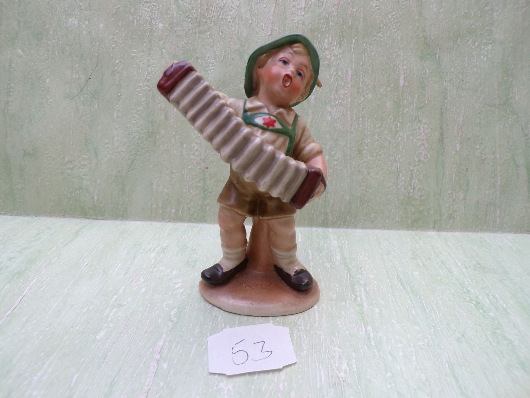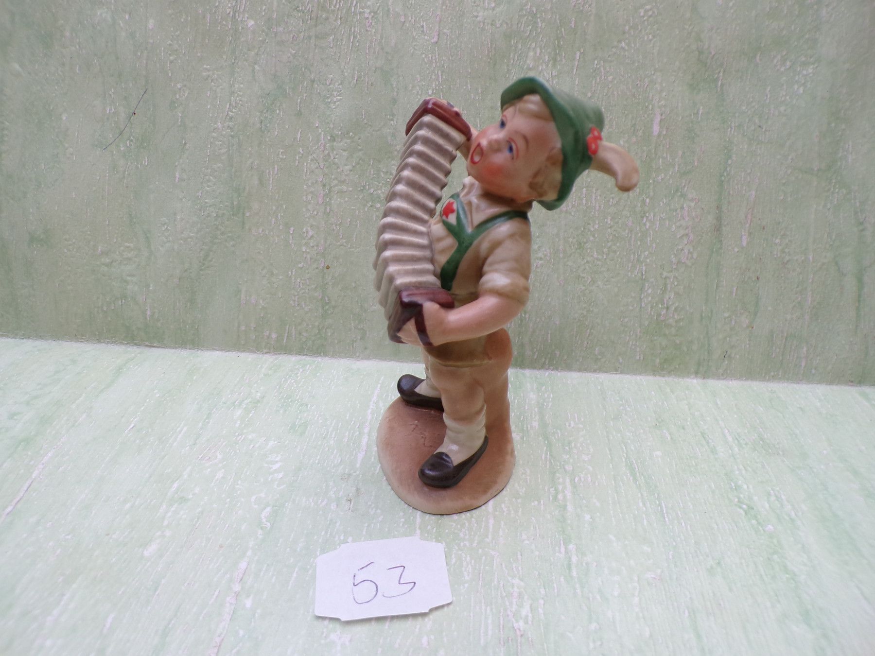 51: Kontrabaß ca 15cm, 52: Mandoline & Frosch ca 12,5cm, 53: Quetschkommode ca 11cm, 54: Quetschkommode & Dackel ca 12,5cm
