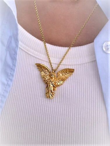 Wunderschöner massiver Anhänger + Kette Vintage Flügel Wächter Gebet Engel Anhänger Engel Flügel Halskette Größe des Anhänger ist in etwa 3,2 cm x 3,8 cm im zweifarbigen gold und Silber Design schwere Ausführung Das ideale Geschenk oder einfach nur zum selber tragen. Metal: Edelstahl vergoldet Die K