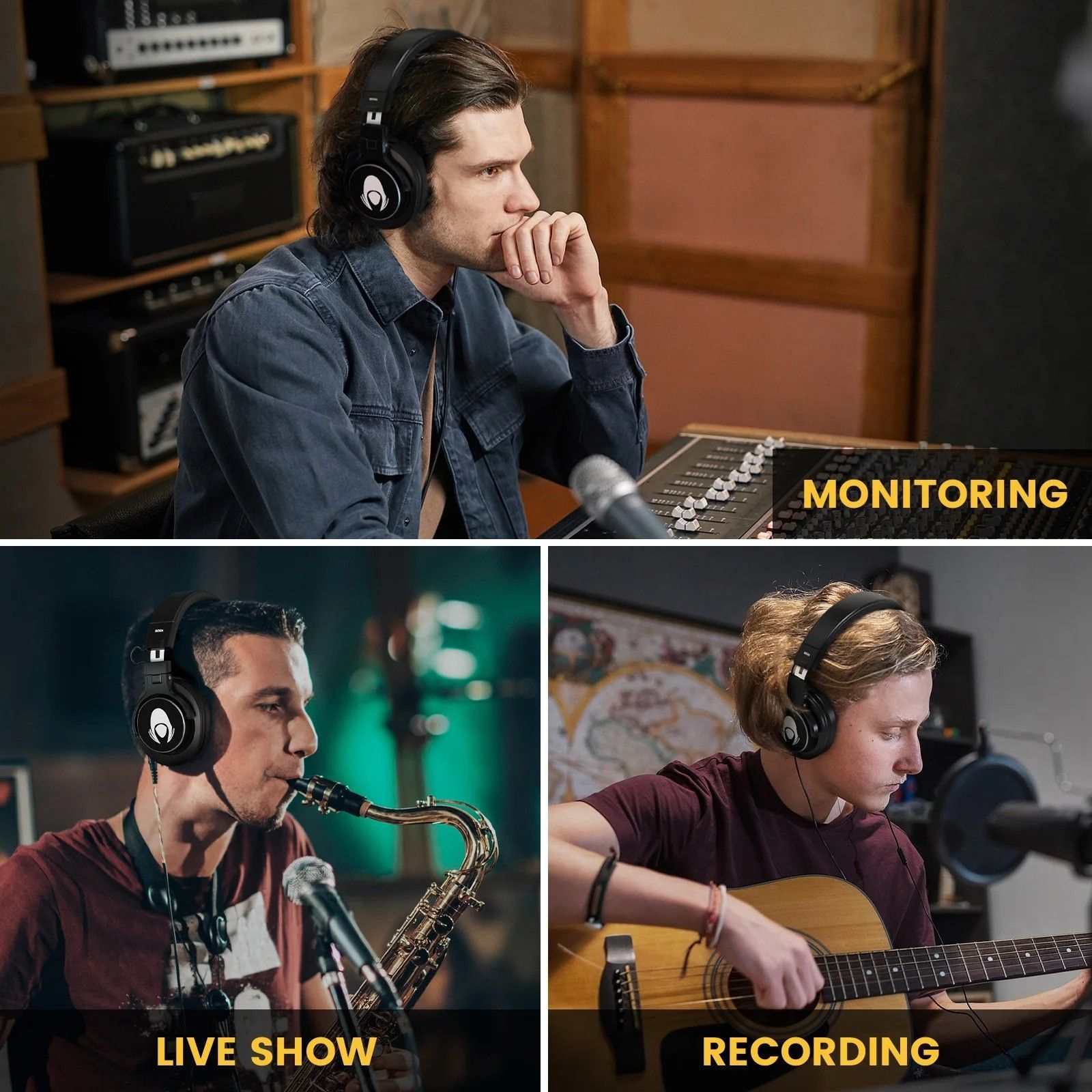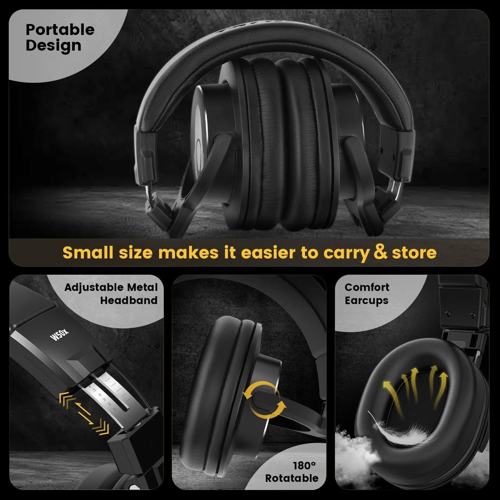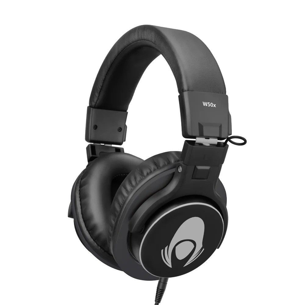 W50x professional over-ear studio headphones with 50mm drivers and detachable cable. Genuine leather pads for comfort and isolation. Ideal for DJing, monitoring, and HiFi listening. Includes carrying bag and adapters.