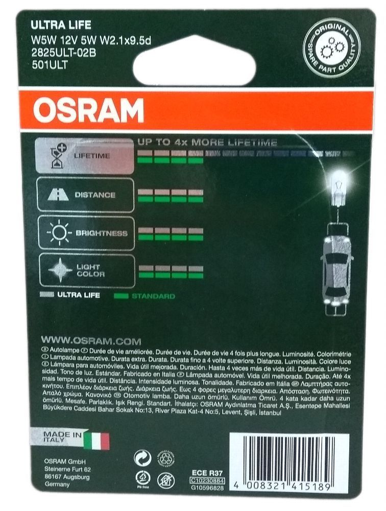 Osram W5W OSRAM Ultra Life Extra Lifetime bis zu 4 fache Lebensdauer 2er 2825ULT-02B