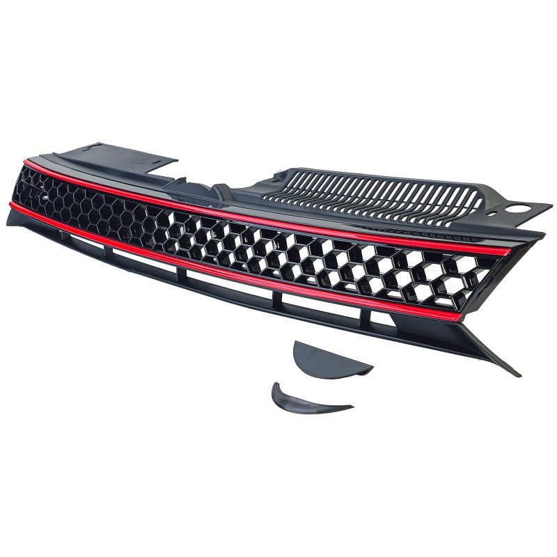 Waben Kühlergrill ohne Emblem + Stoßstangengitter GLANZ für VW Golf 6 08-13