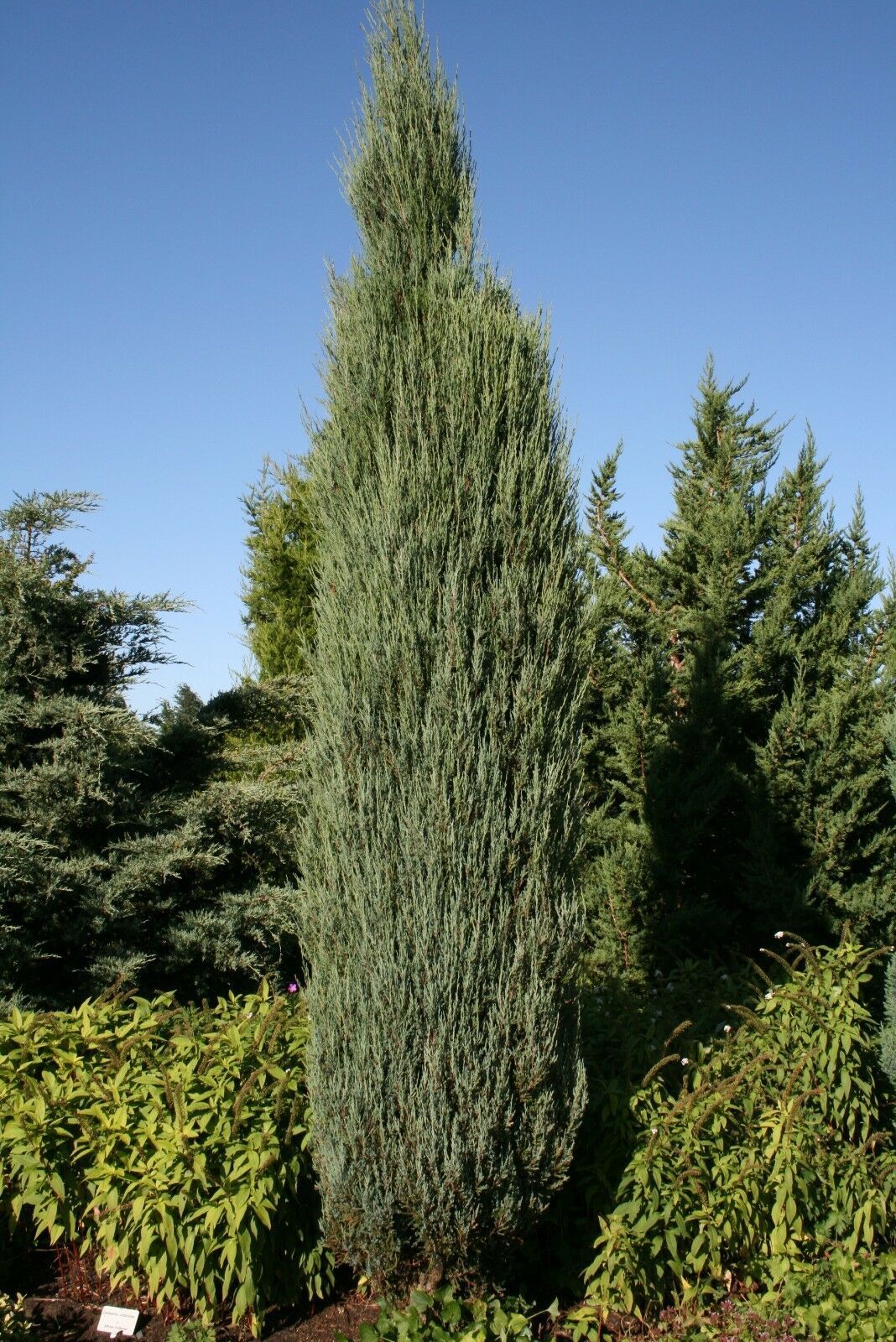 Wacholder 'Blue Arrow' - Säulenwacholder - Juniperus scopulorum Der winterharte Säulen-Wacholder stellt eine wertvolle Alternative zur Mittelmeer-Zypresse dar, deren Winterhärte hierzulande nicht überzeugt. Mit dem Säulenwacholder lassen sich Beete gefälliger gestalten und Pflanzenarrangements erhal