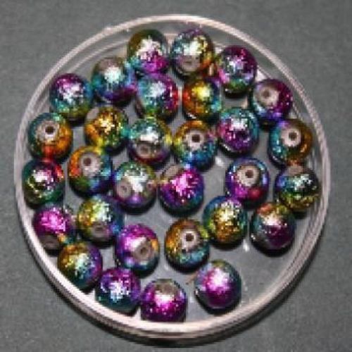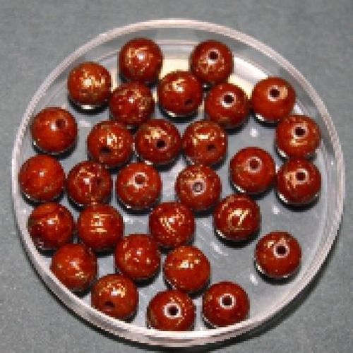 Wachsperlen, Beutelinhalt 48 Stück, Größe 6 mm in verschiedenen Farben teils mit Goldfäden durchzogen.