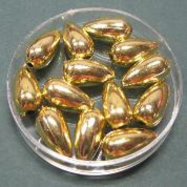 Wachsperlen - Tropfen, Farbe gold, Beutelinhalt 20 Stück, Die Tropfen haben eine Größe von 13 x 7 mm. zum Basteln oder Aufnähen auf Textilien