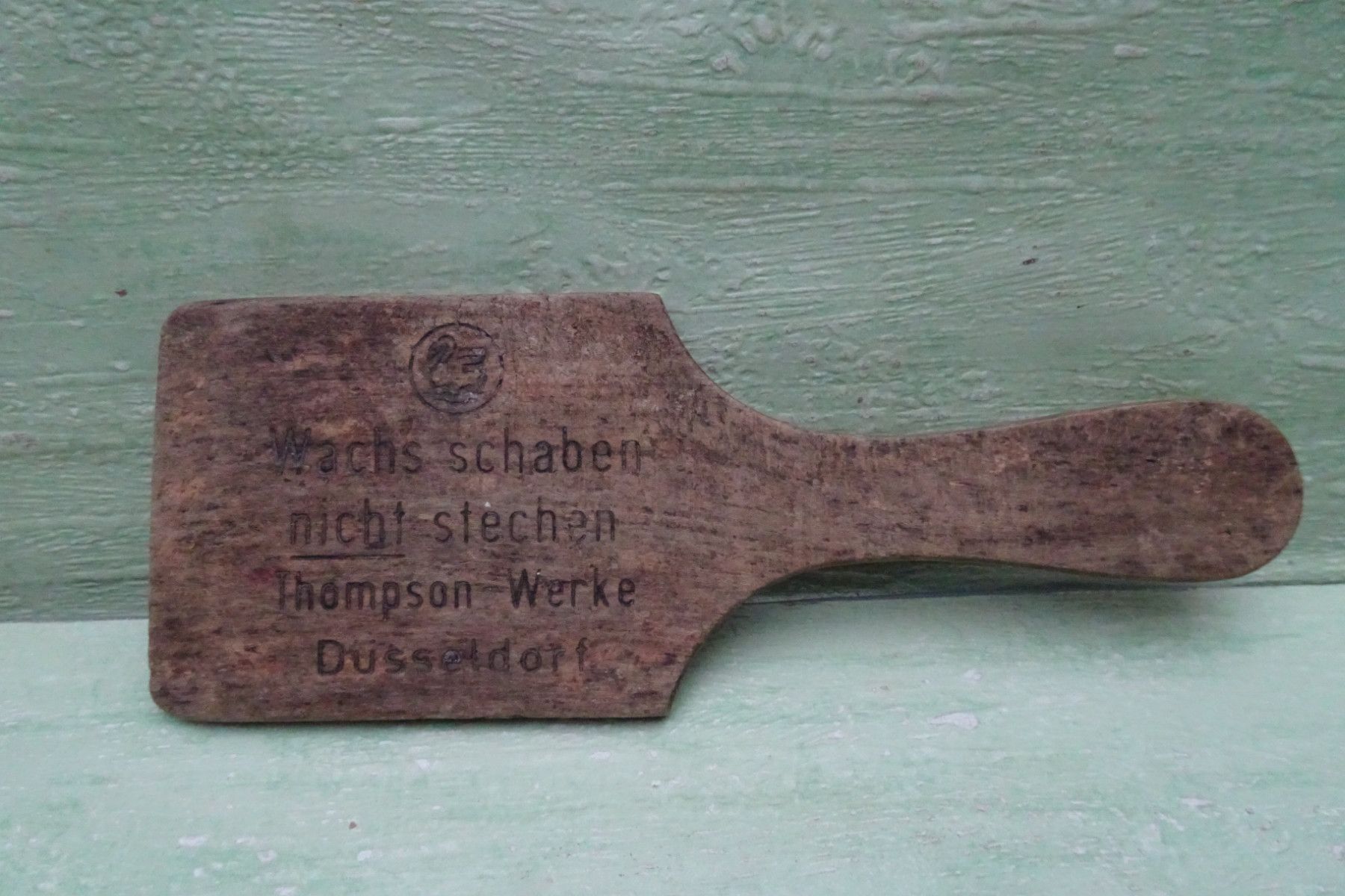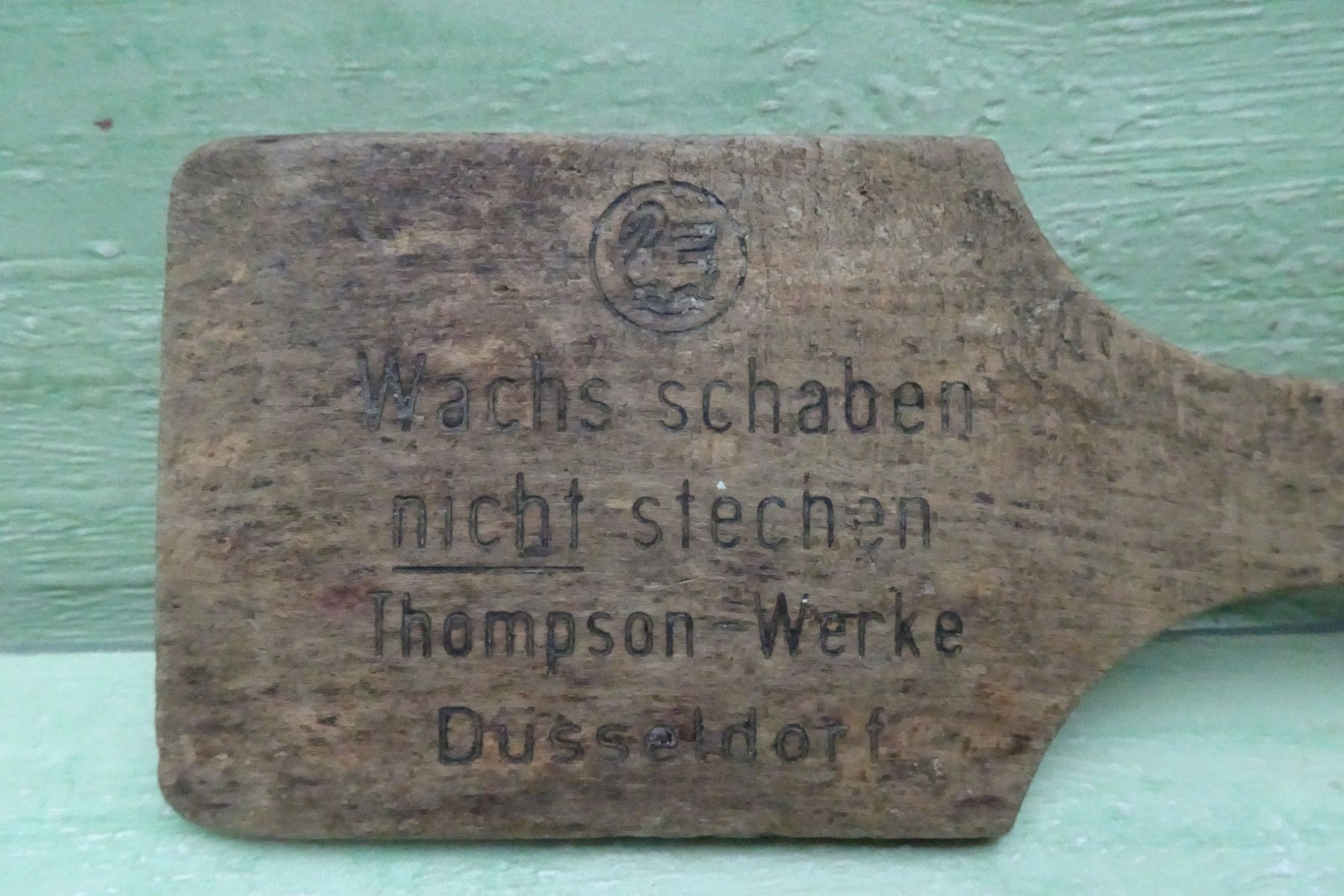 Wachsschaber Thompson Werke Düsseldorf alter Holz-Wachs-Schaber