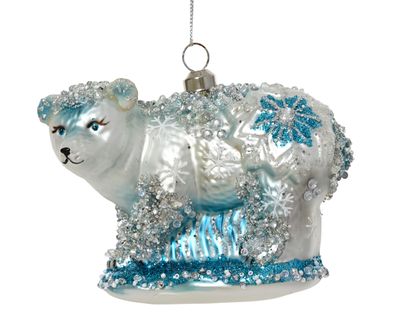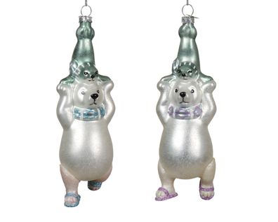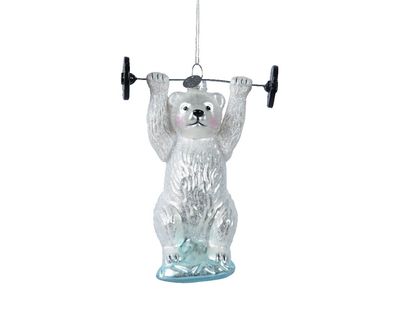 • Christbaumschmuck Glas Eisbär Kraftsport 13cm - Weiß / Eisblau