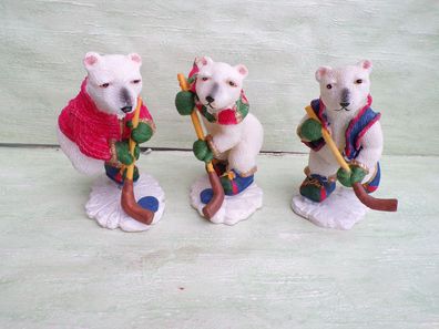 • 3 Eisbären spielen Eishockey ca 13,5 cm groß Figuren neuwertig