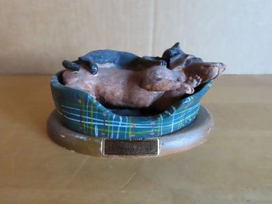 • Figur Hund und Katze schlafen im grünen Körbchen