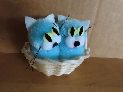 • Figur klein im Körbchen zwei Pompon-Katzen türkis
