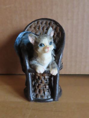 • Figur Katze auf einem Korbsessel mit Decke ca. 10cm h