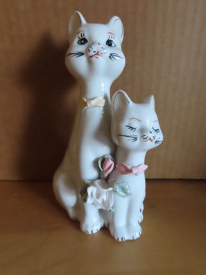 • Figur Katze zwei Katzen weiß mit Blumen u. Schleife ca. 17,5 cm H