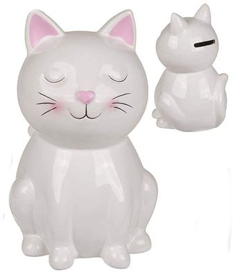 • Spardose Katzen Figur Keramik weiß mit Schloß Kätzchen Geschenk Sparschwein