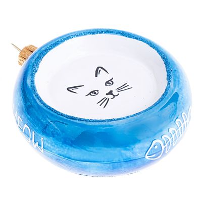 • Christbaumschmuck Glas 8cm Futternapf Katze Figur Blau