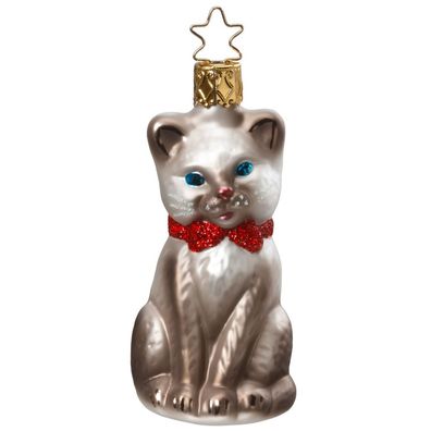 • Christbaumschmuck Katze mit Schleife 8,5cm Glas Figur Grau