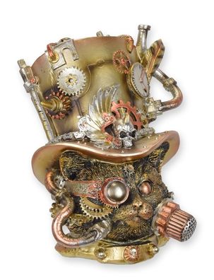 • Steampunk-Figur Katze aus Kunstharz Replikat Retro Design Dekoration