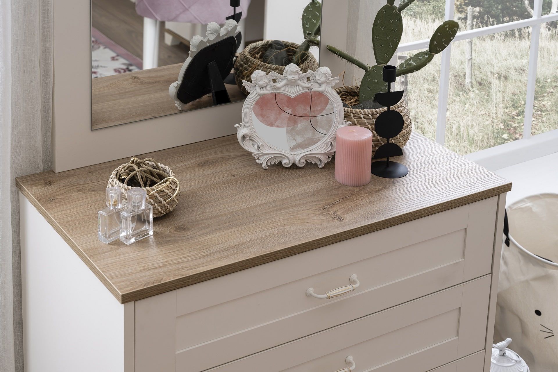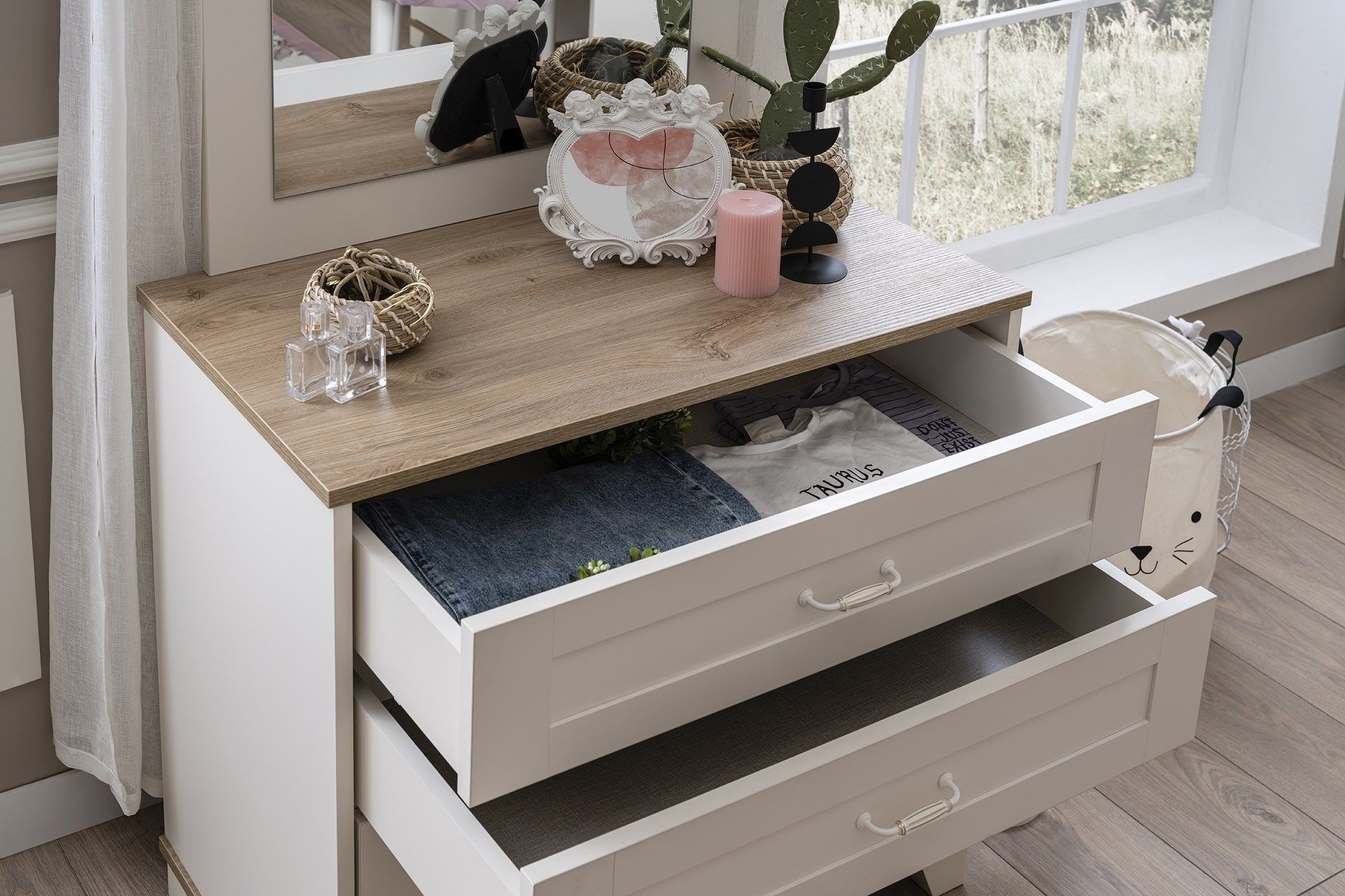 Wäschekommode Freya in Weiß/Holzoptik