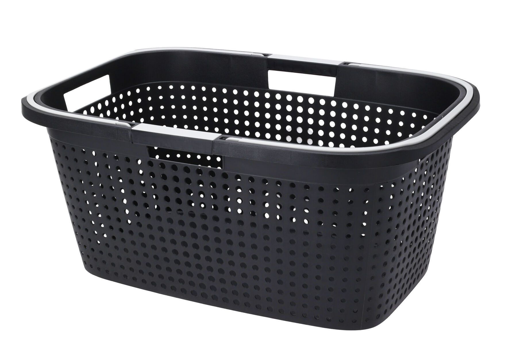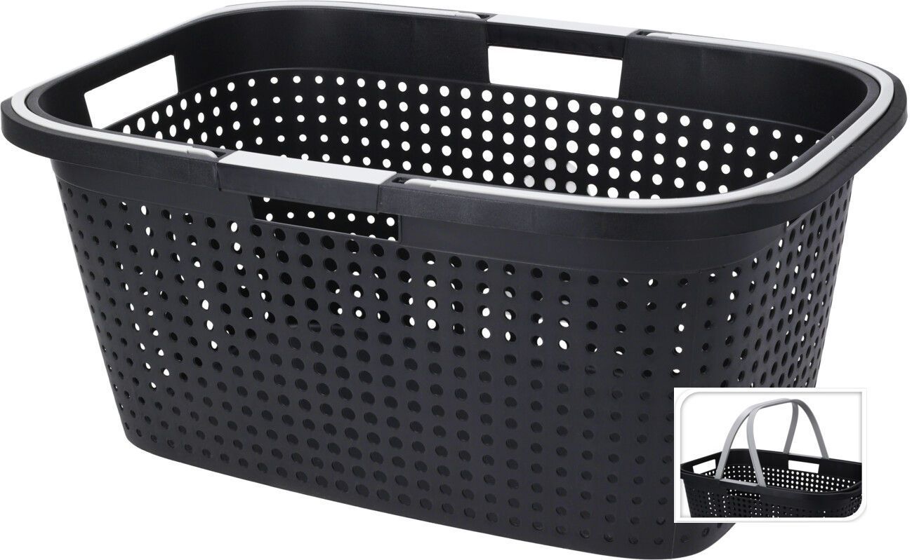 Wäschekorb 45 Liter schwarz - 60 x 39 cm - Wäsche Sammler Trage Einkaufs Korb groß