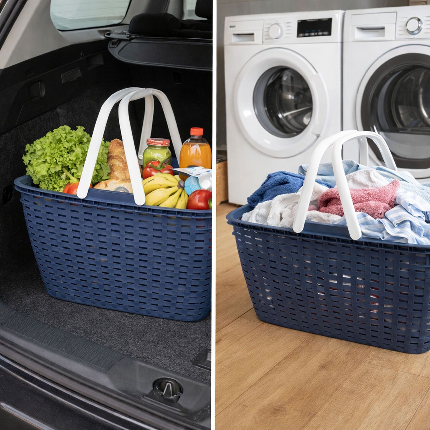 Wäschekorb Einkaufskorb tragbar Wäschebox Wäschebehälter Henkel 35 Liter Blau
