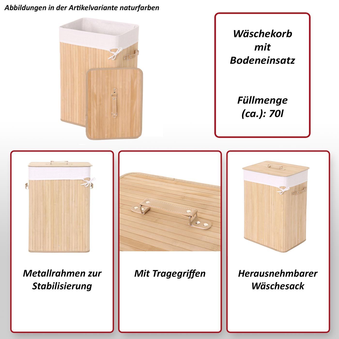 Mendler Wäschekorb HWC-C21, Laundry Wäschesammler Wäschebehälter, Bambus 61x43x32cm 70l