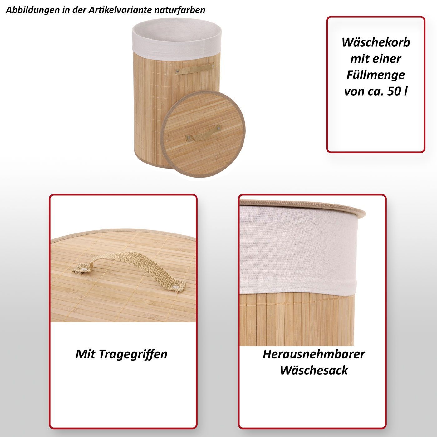 Mendler Wäschekorb HWC-C21, Laundry Wäschesammler Wäschetonne, Bambus rund 59x35cm 50l