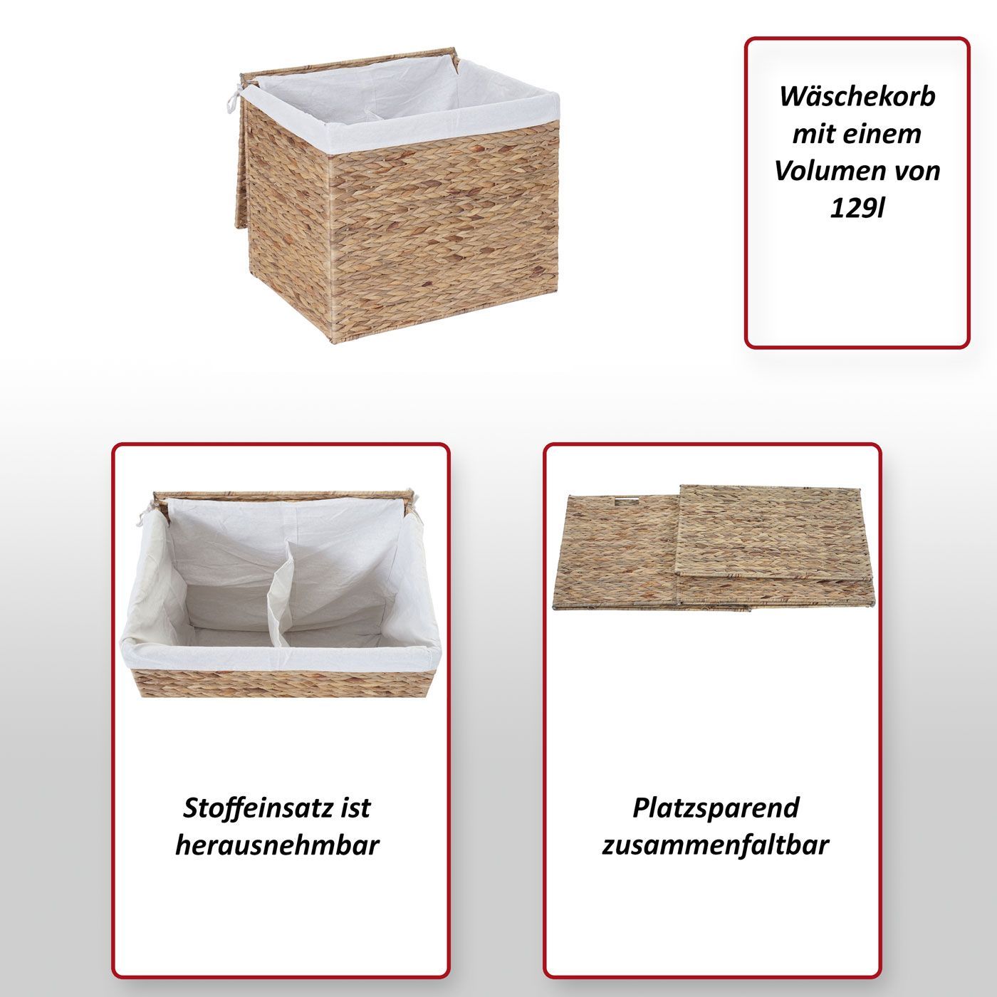 Mendler Wäschekorb HWC-C27, Wäschesammler Wäschesortierer, Wasserhyazinthe 50x60x43cm