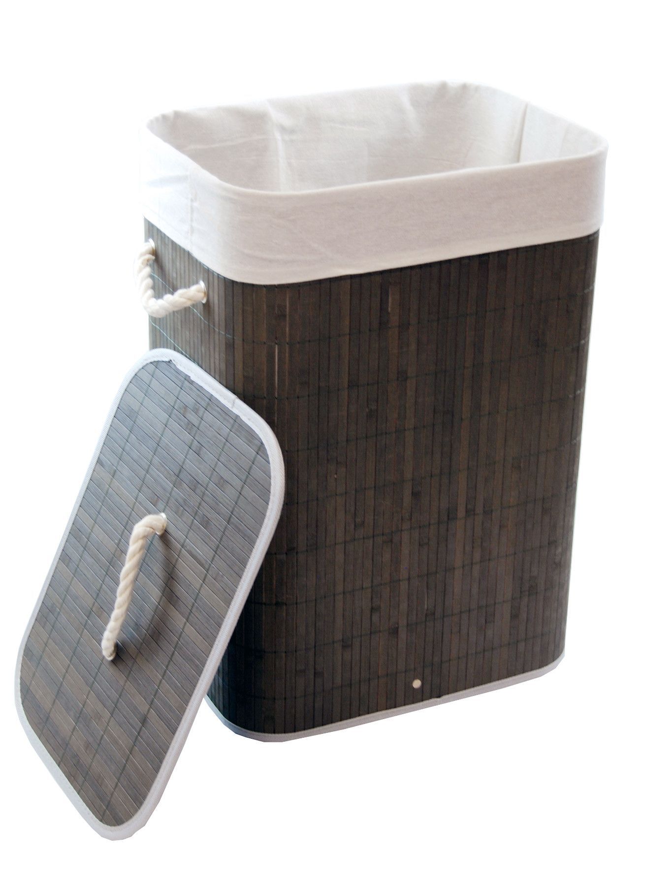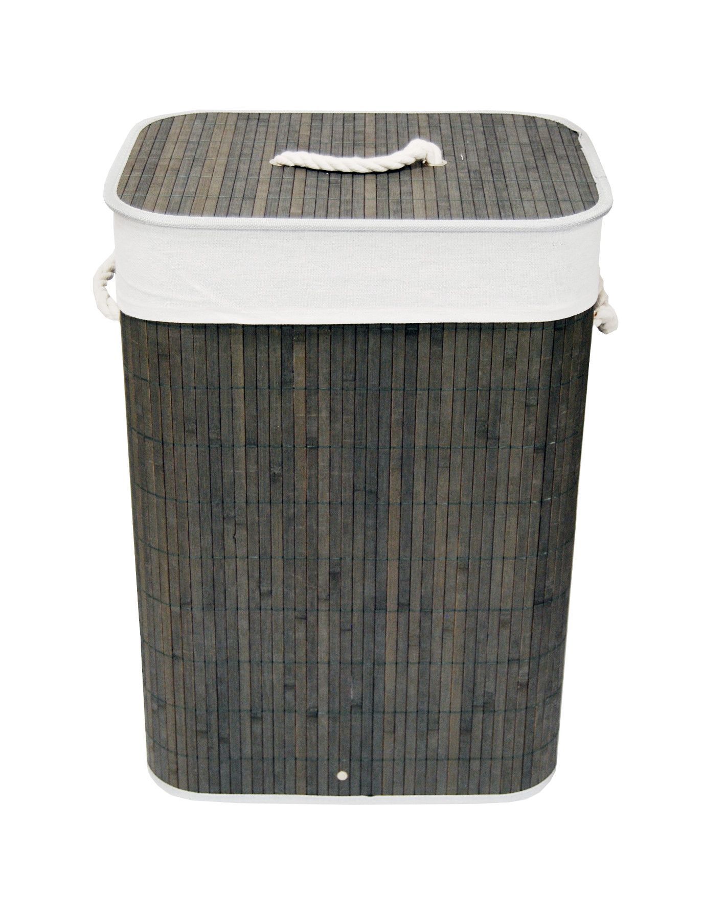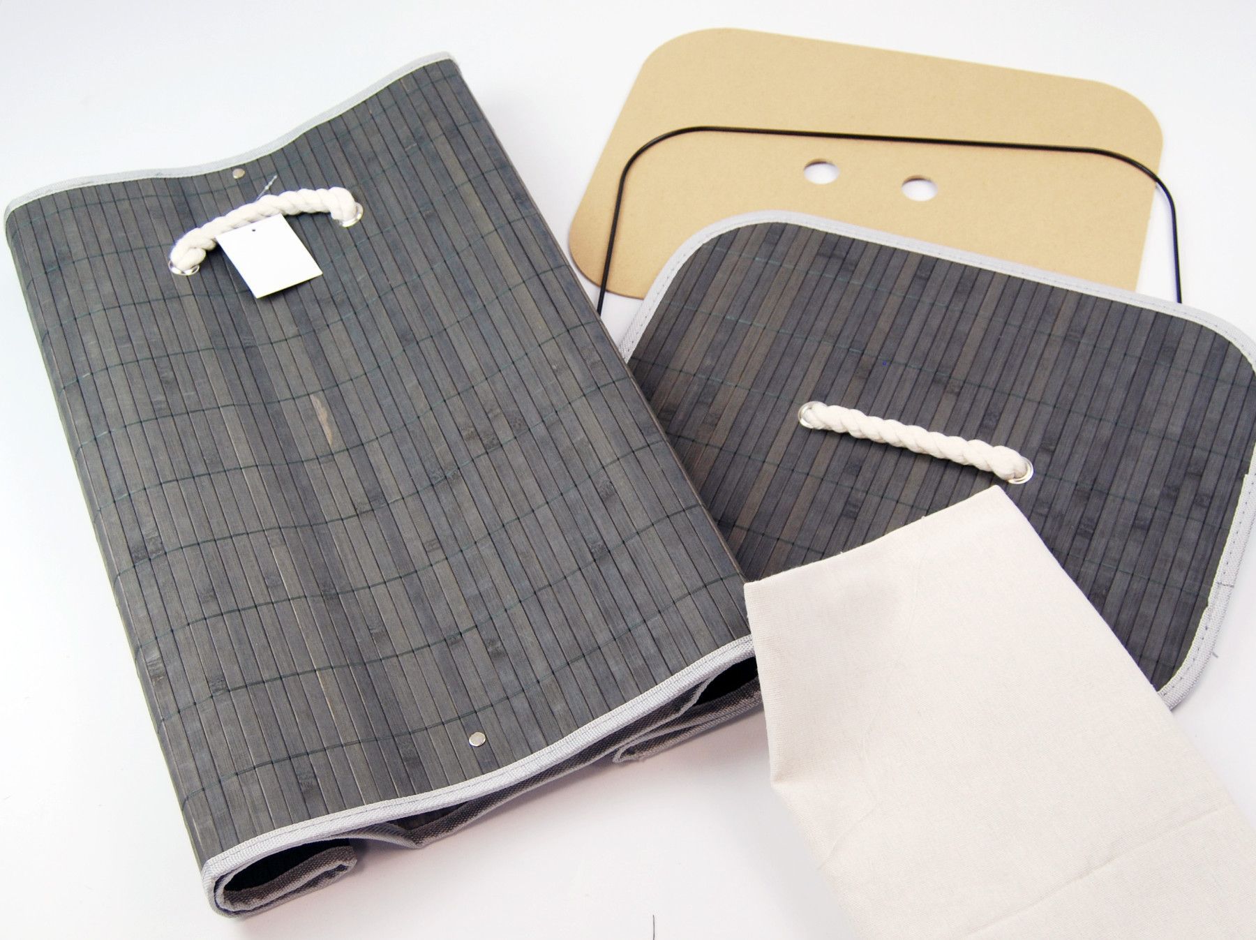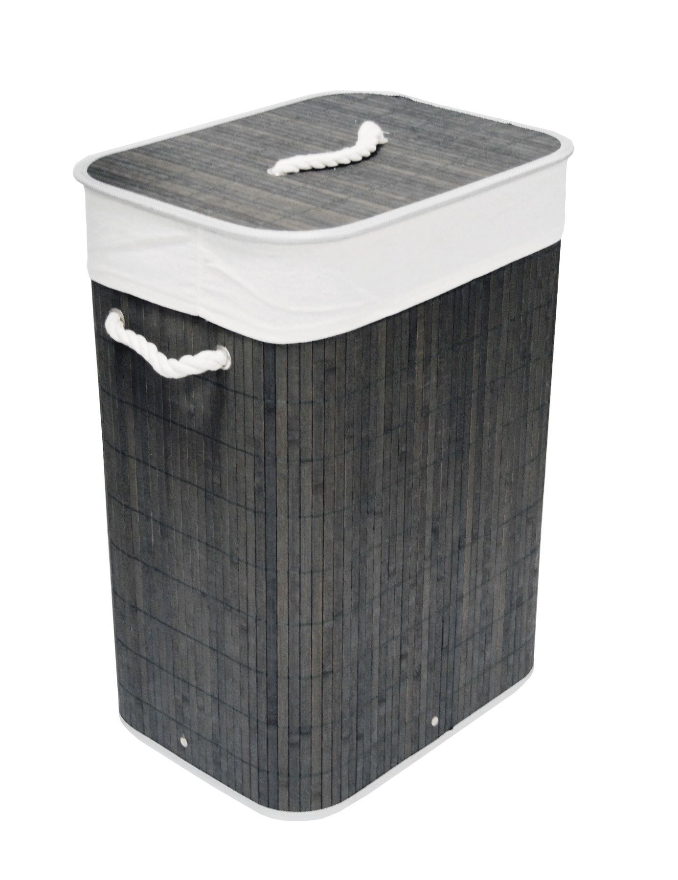 Wäschekorb Wäschetruhe Bambus Anthrazit faltbar m. Bezug Deckel Hangriff 40x30 H.57cm