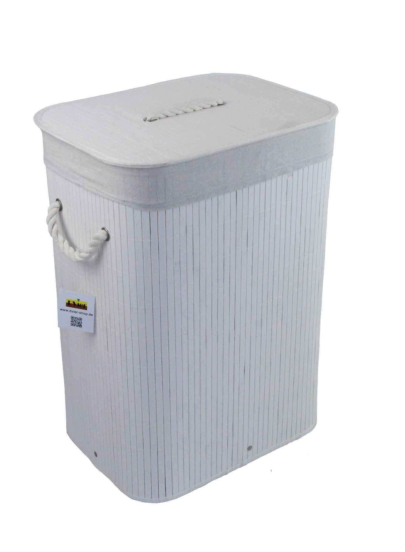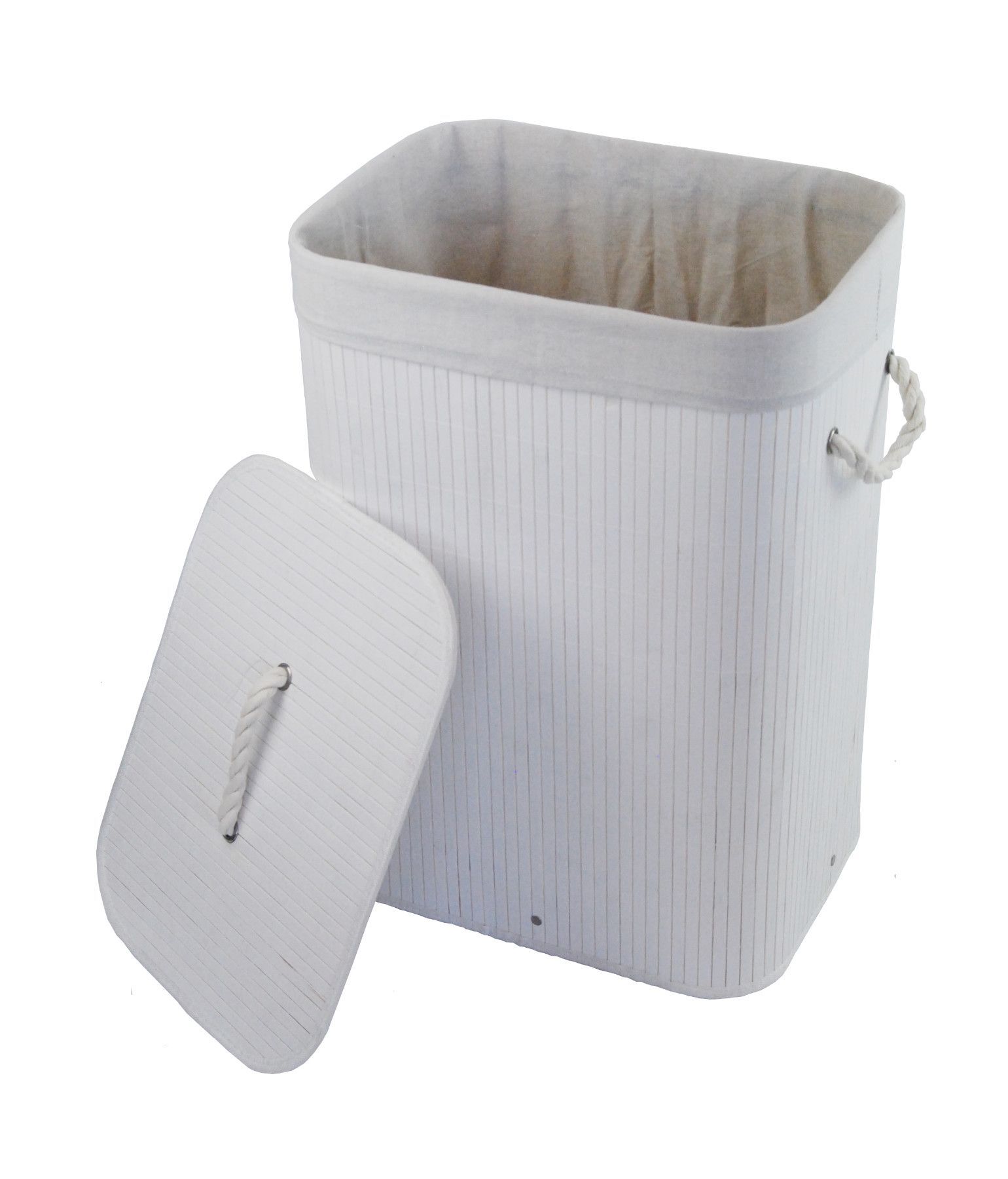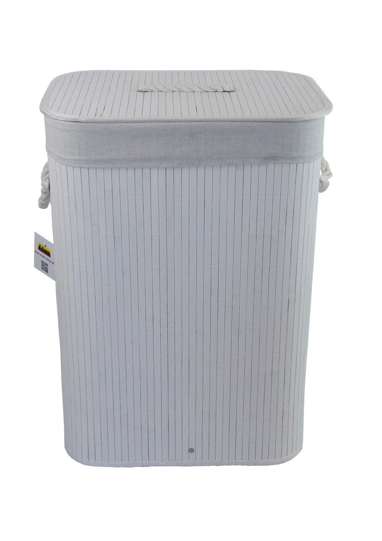 Wäschekorb Wäschetruhe Bambus weiß faltbar m. Bezug Deckel Hangriff 40x30 H.57cm
