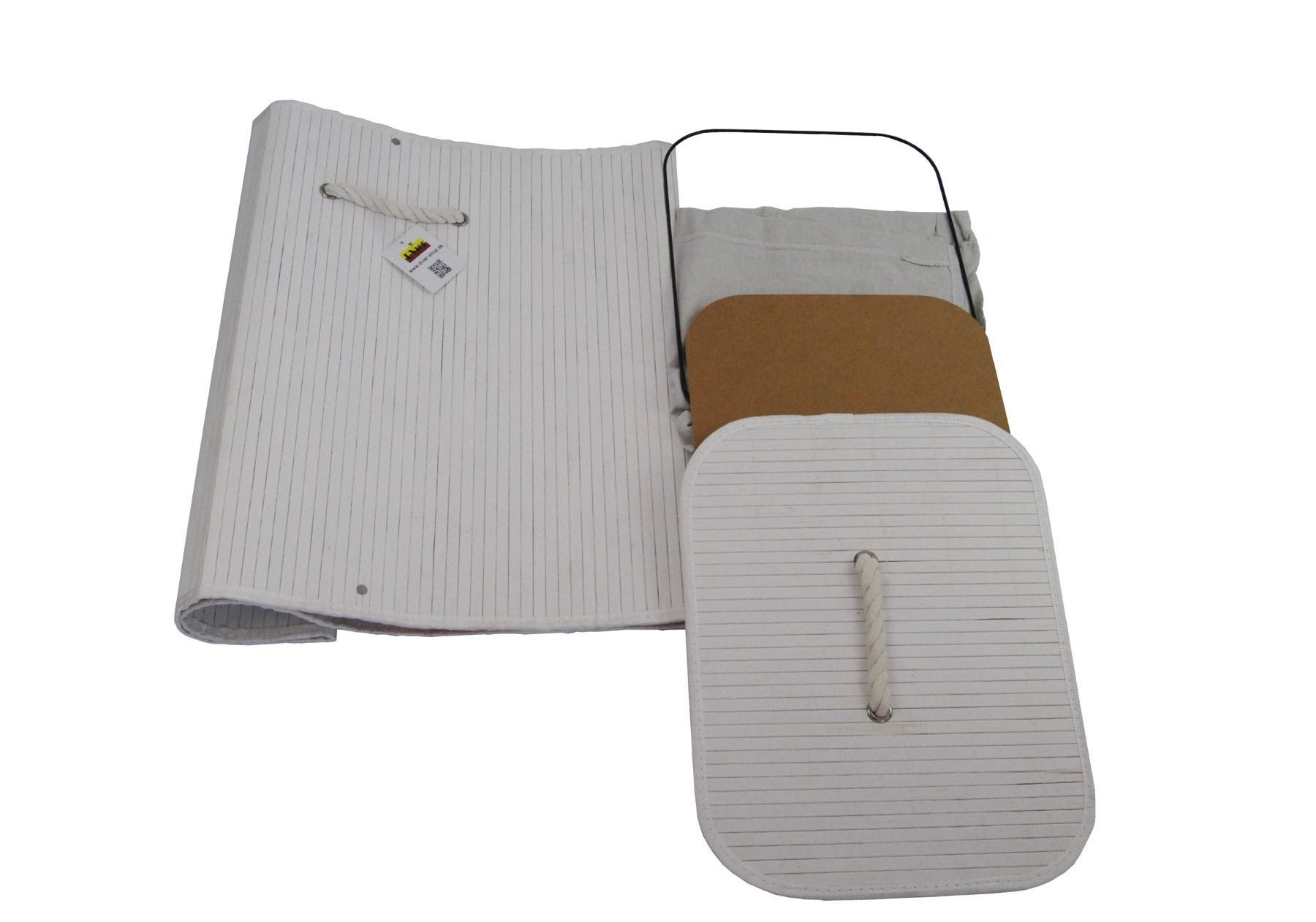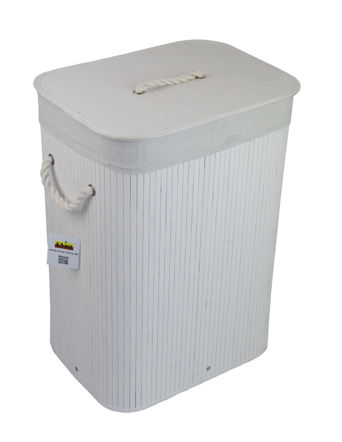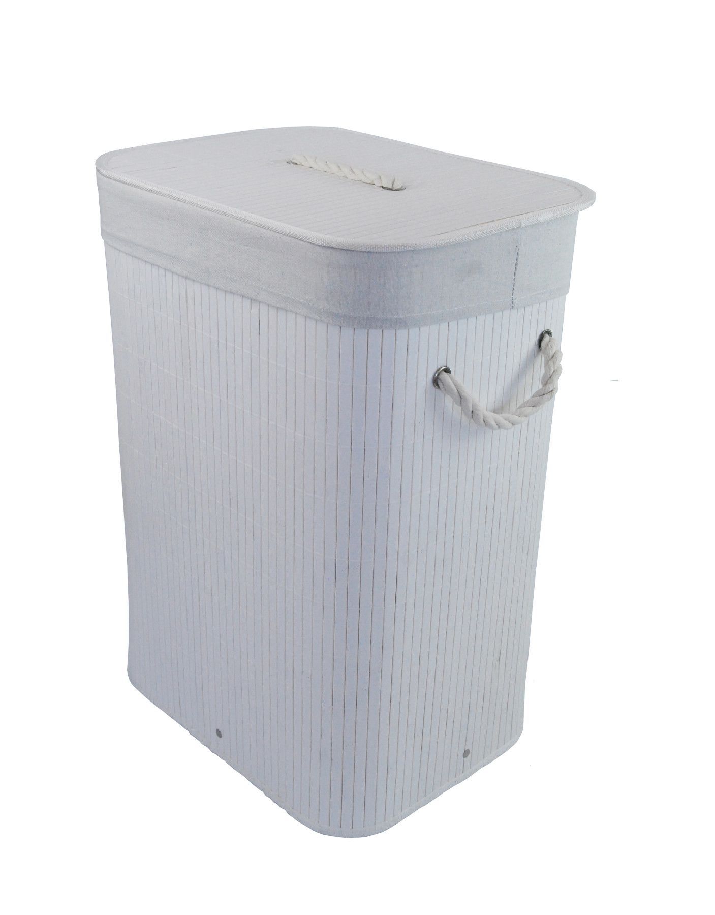 Wäschekorb Wäschetruhe Bambus weiß faltbar m. Bezug Deckel Hangriff 40x30 H.57cm