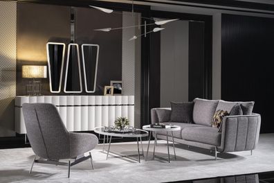Grau Textil Sofa und Sessel Set modern Wohnzimmermöbel