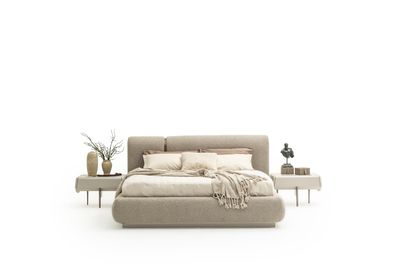 Schlafzimmer Set Bett 180?200 Beige 2? Nachttische Moderne Design 3tlg