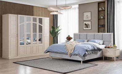 Schlafzimmer Set Bett 2x Nachttische Kleiderschrank Luxus neu 4tlg