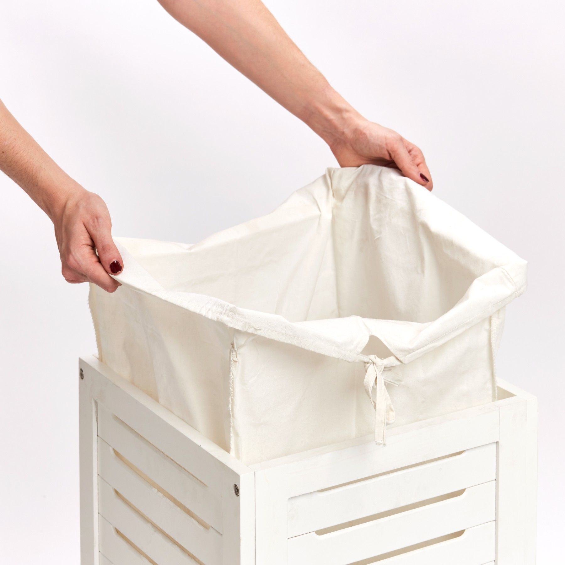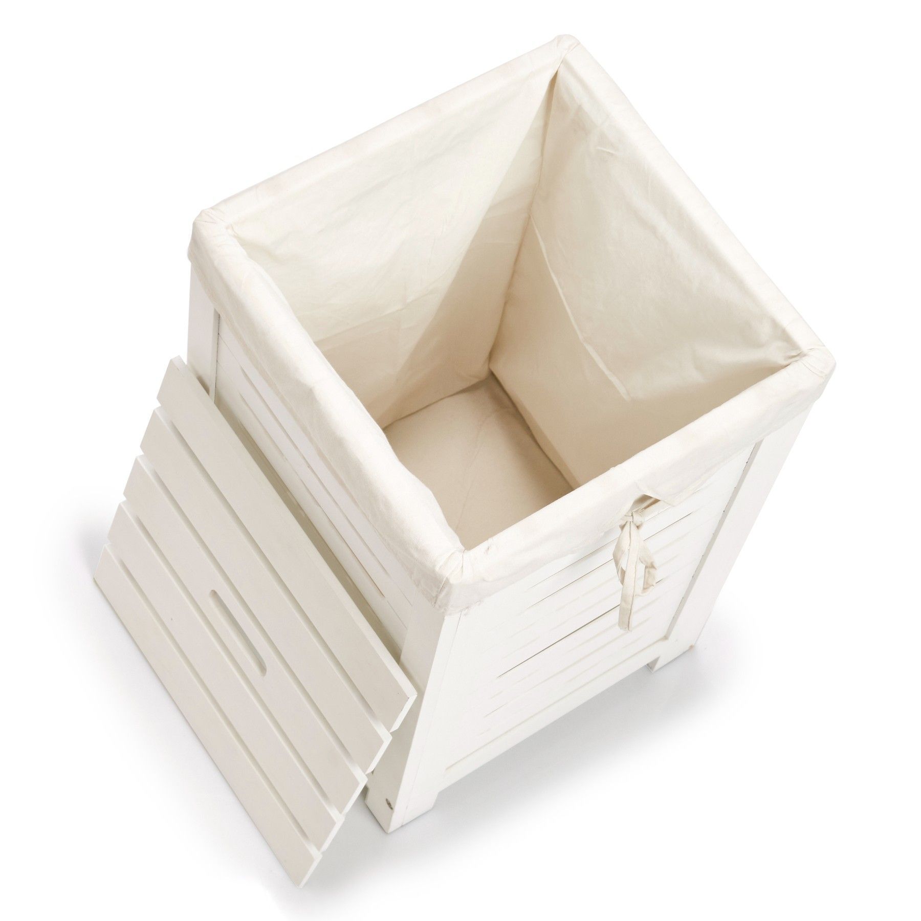 Wäschesammler, Holz/Canvas, weiß lackiert